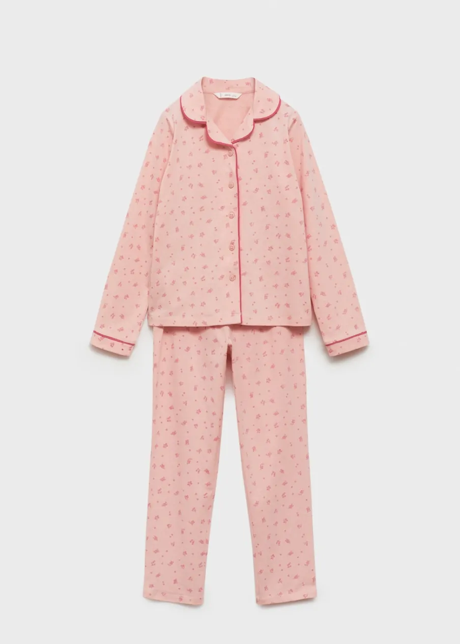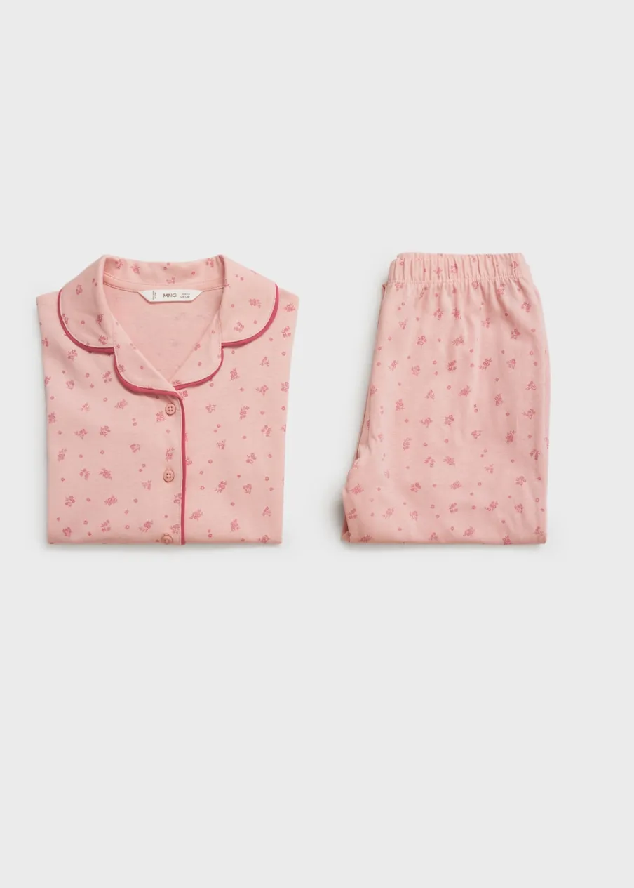 Zestaw piżamowy: koszulka i spodnie. Bawełna 100%. Model długi. Zapięcie na guziki. Długi rękaw. Elastyczny pas.