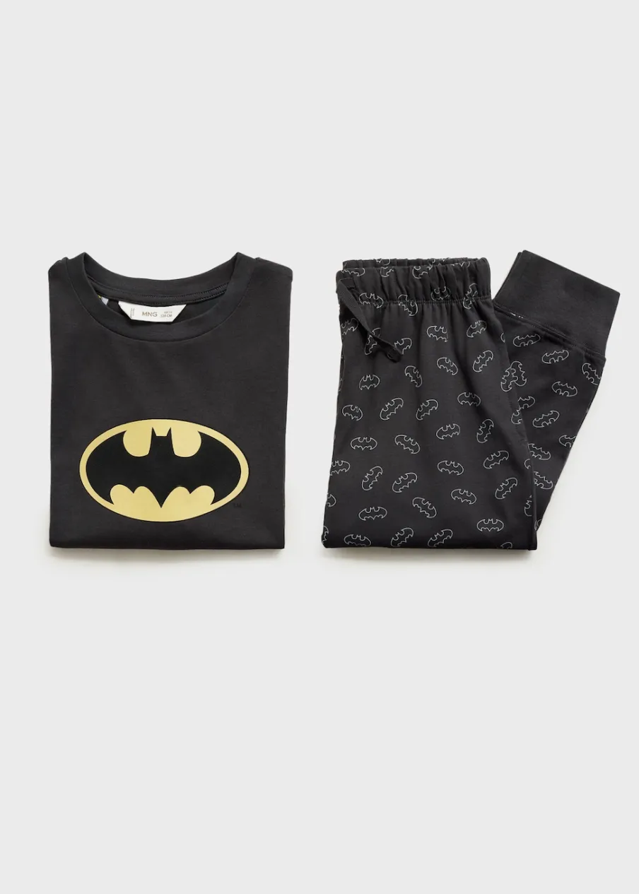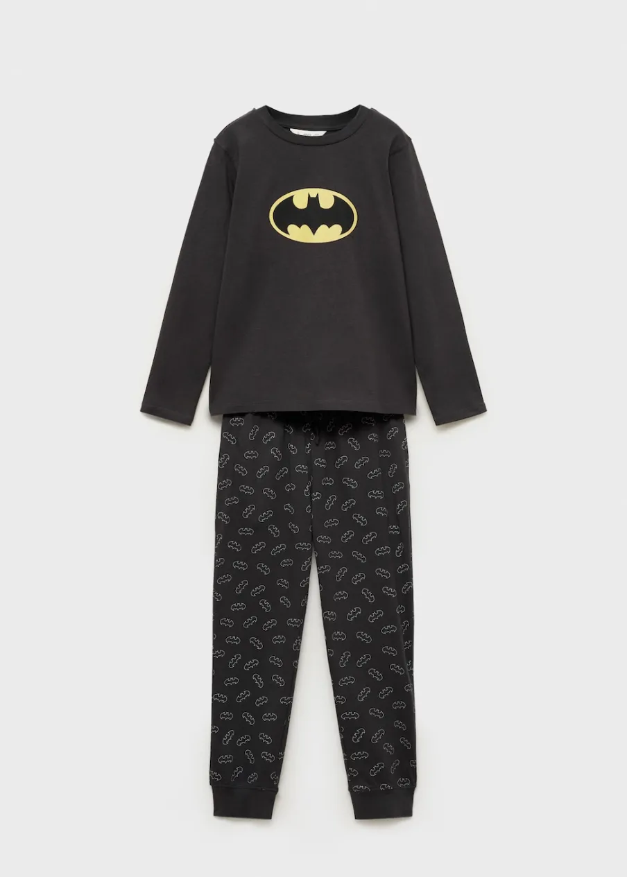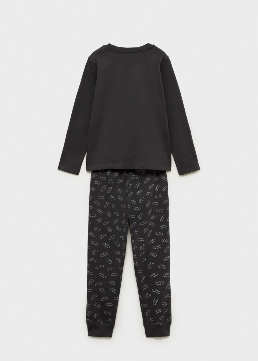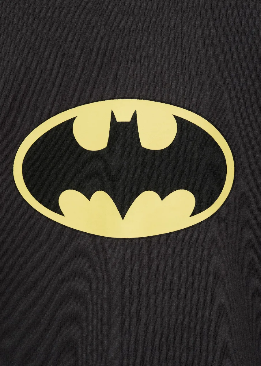 Zestaw piżamowy: koszulka i spodnie. Wzór z Batmanem. Bawełna 100%. Model prosty. Model długi. Okrągły dekolt. Długi rękaw.