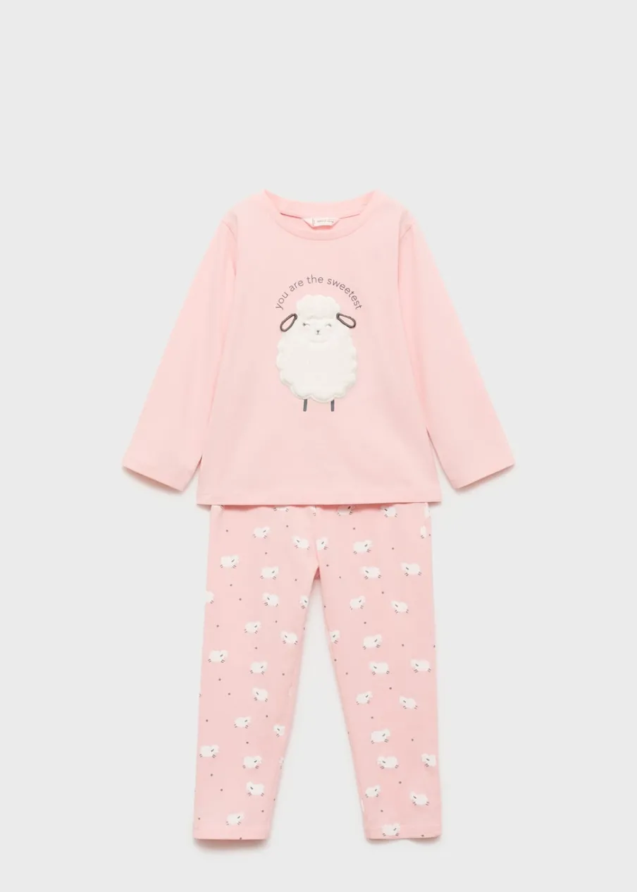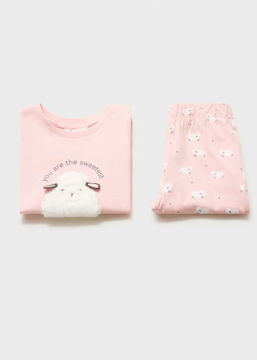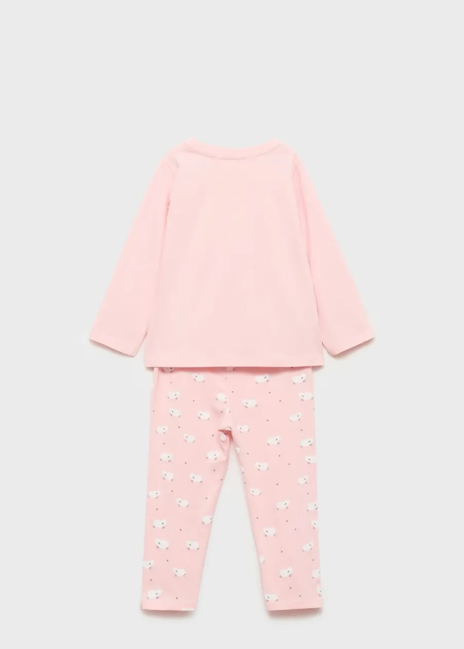 Bawełna 100%. Zestaw piżamowy: koszulka i spodnie. Nadruk w owieczki. Model prosty. Okrągły dekolt. Długi rękaw. Elastyczny pas.