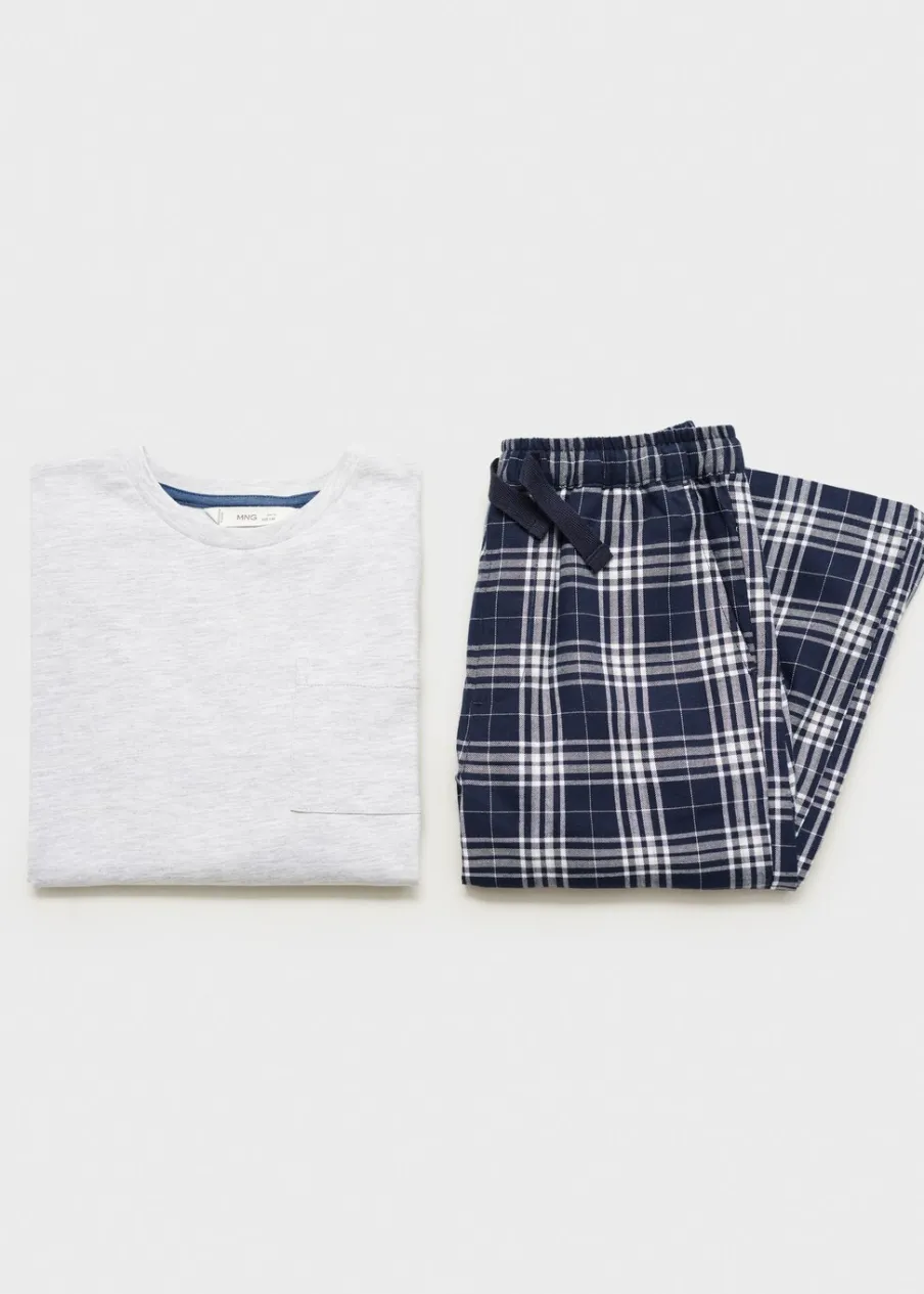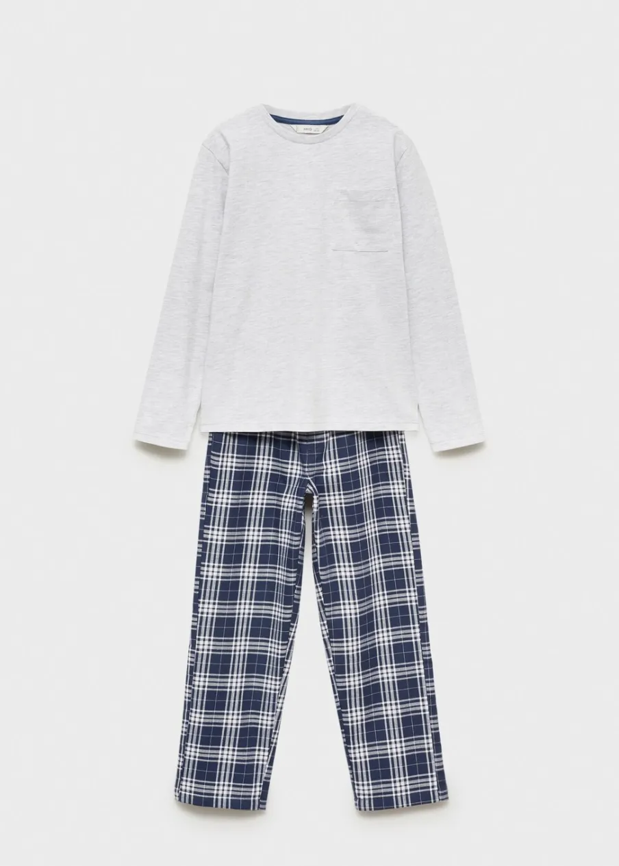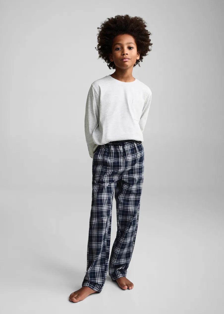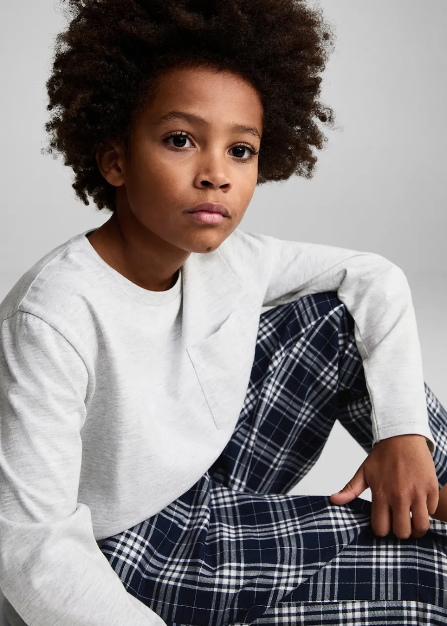 Tkanina z bawełną. Model prosty. Model długi. Elastyczny pas. Okrągły dekolt. Dwie kieszenie boczne. Wiązanie na sznurek. Długi rękaw. Kieszeń nakładana. Deseń w kratę.