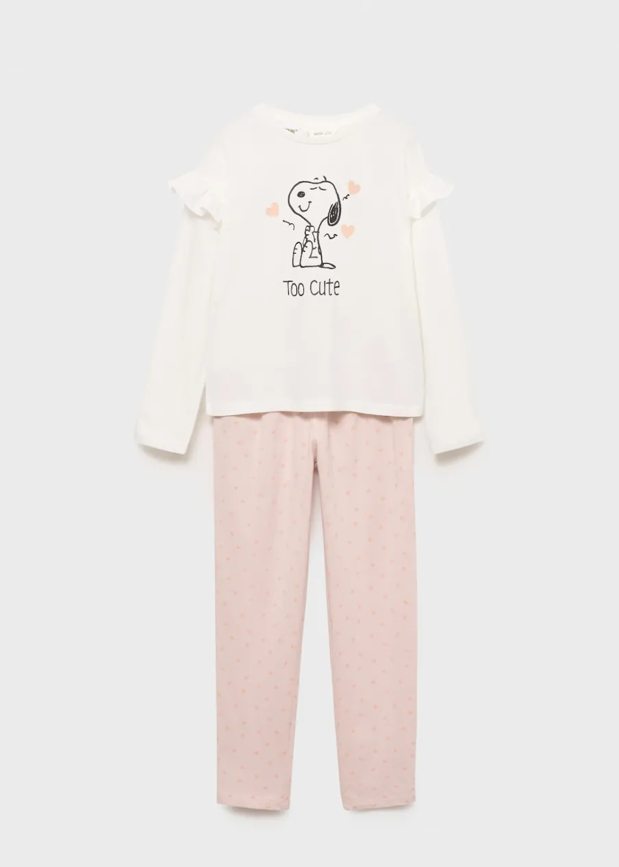 Zestaw piżamowy: koszulka i spodnie. Bawełna 100%. Model długi. Długi rękaw. Okrągły dekolt. Motyw Snoopy’ego.
