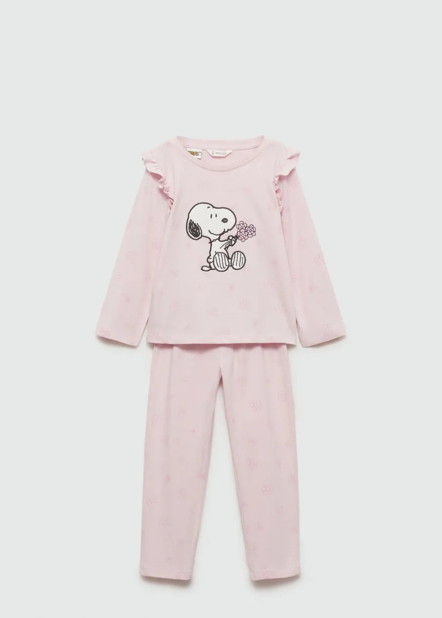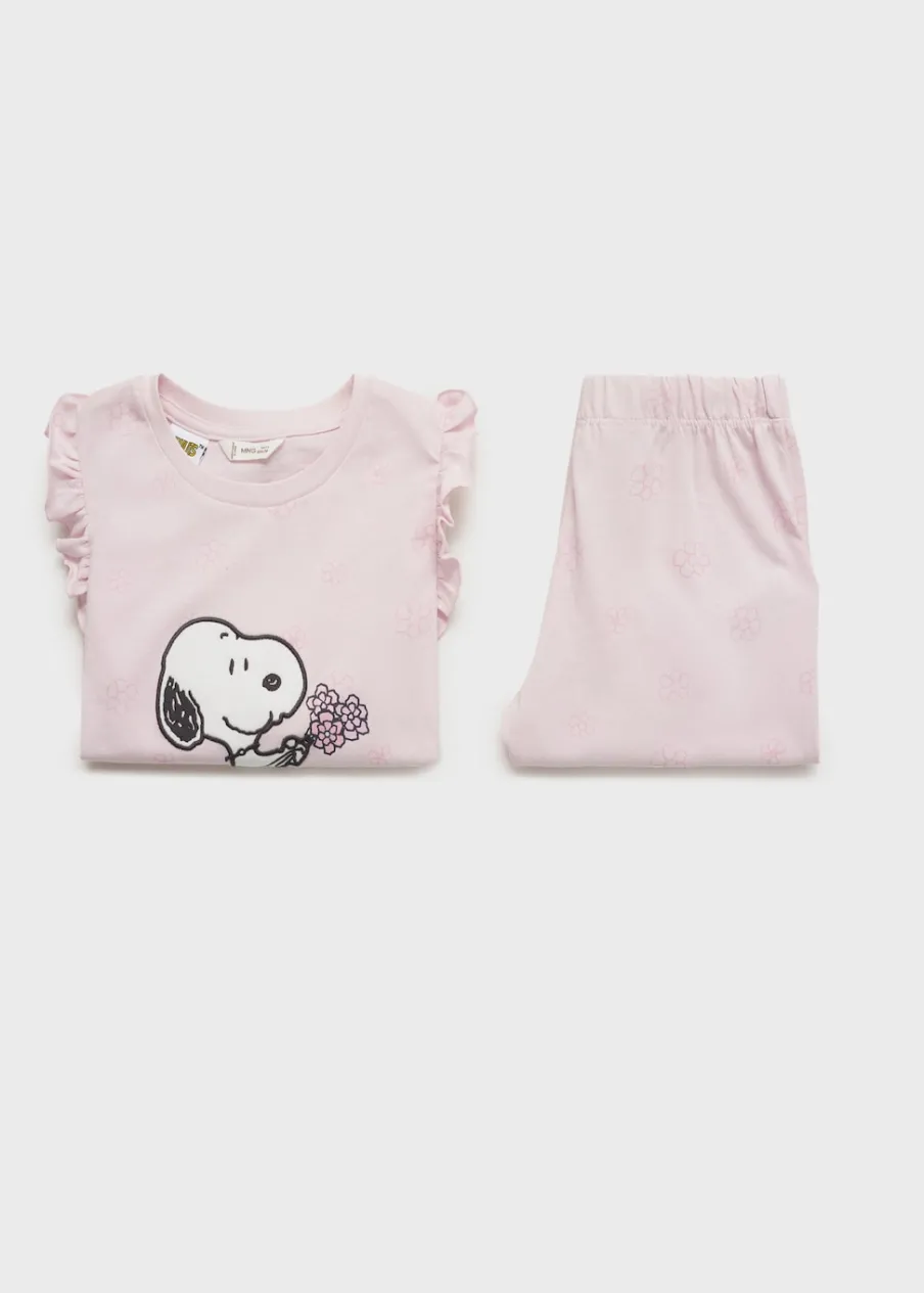 100% bomull. Model prosty. Model długi. Model z falbankami. Motyw Snoopy’ego. Licencjonowany nadruk. Elastyczny pas.
