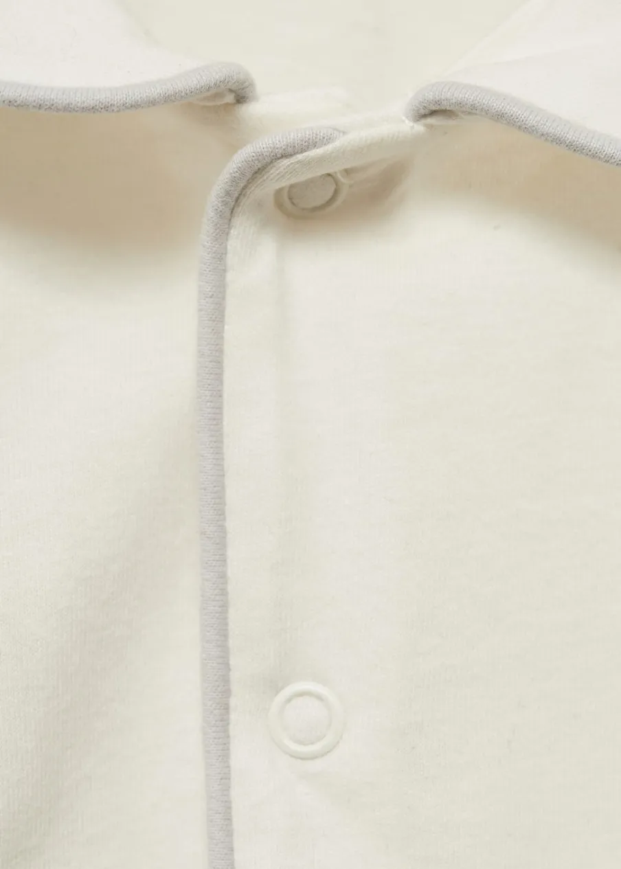100% bomull. Model długi. Model prosty. Kołnierzyk bebe. Długi rękaw. Zapięcie na zatrzaskowe guziki.
