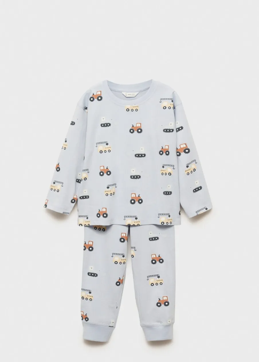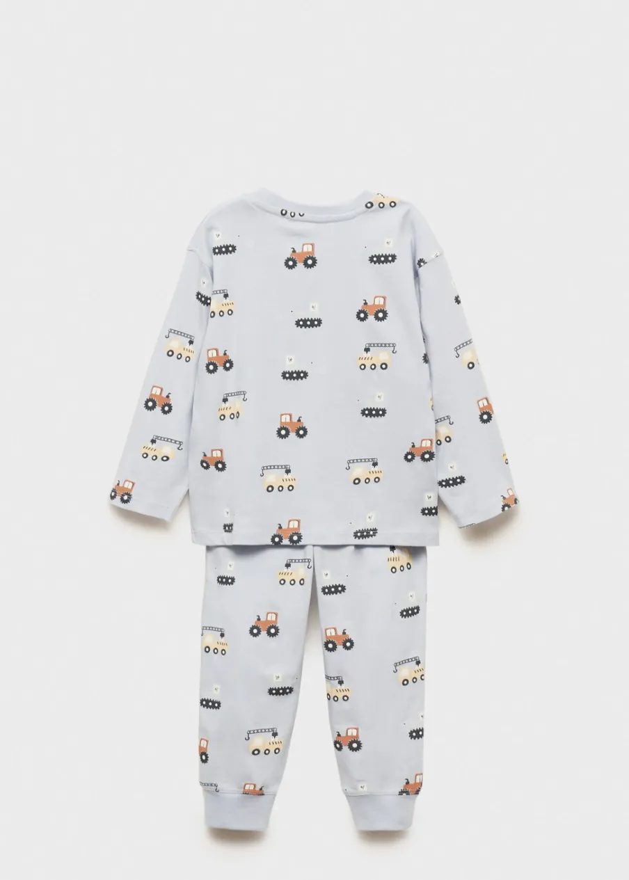 Zestaw piżamowy: koszulka i spodnie. Bawełna 100%. Model prosty. Okrągły dekolt. Nadruk z samochodem.
