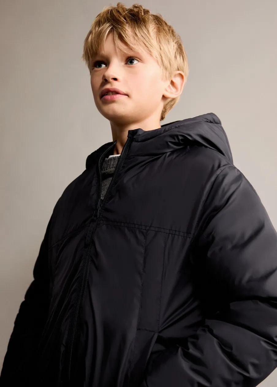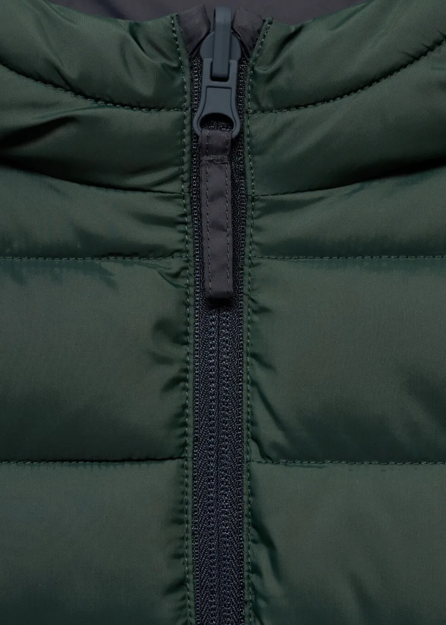Model dwustronny. Kaptur. Model prosty. Długi rękaw. Model pikowany. Dwie kieszenie boczne. Zapięcie na suwak.