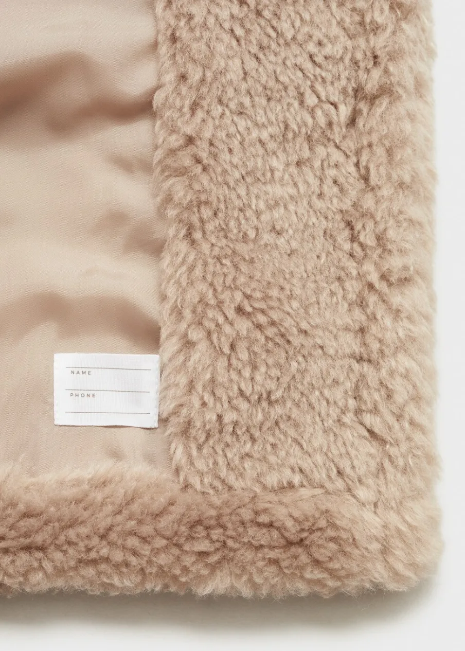 Kolekcja Powrót do szkoły. Model prosty. Płaszcz z baranka. Model długi. Koszulowy kołnierz. Długi rękaw. Dwie kieszenie boczne. Zapięcie na zatrzaskowe guziki. Etykieta na dane kontaktowe.