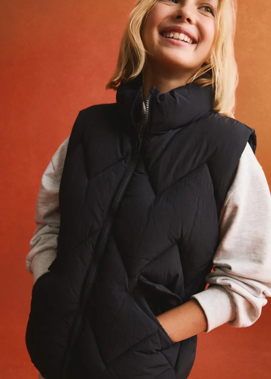 Kolekcja Powrót do szkoły. Model prosty. Model pikowany. Golf. Wewnętrzna podszewka. Dwie kieszenie z przodu. Zapięcie na suwak.