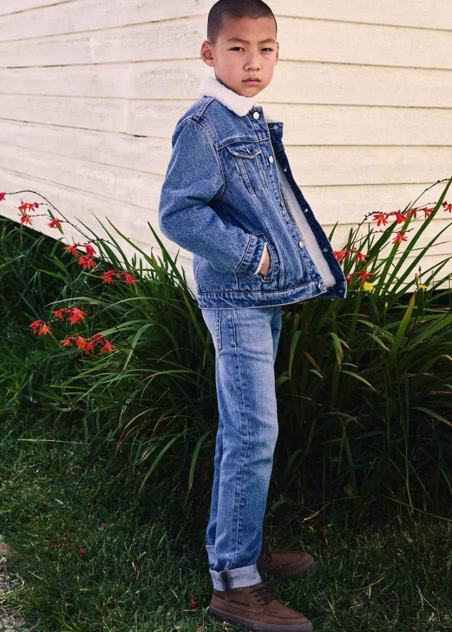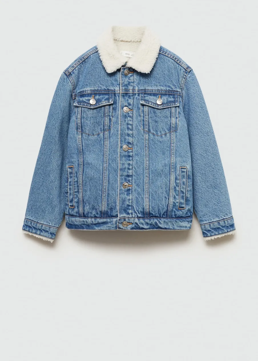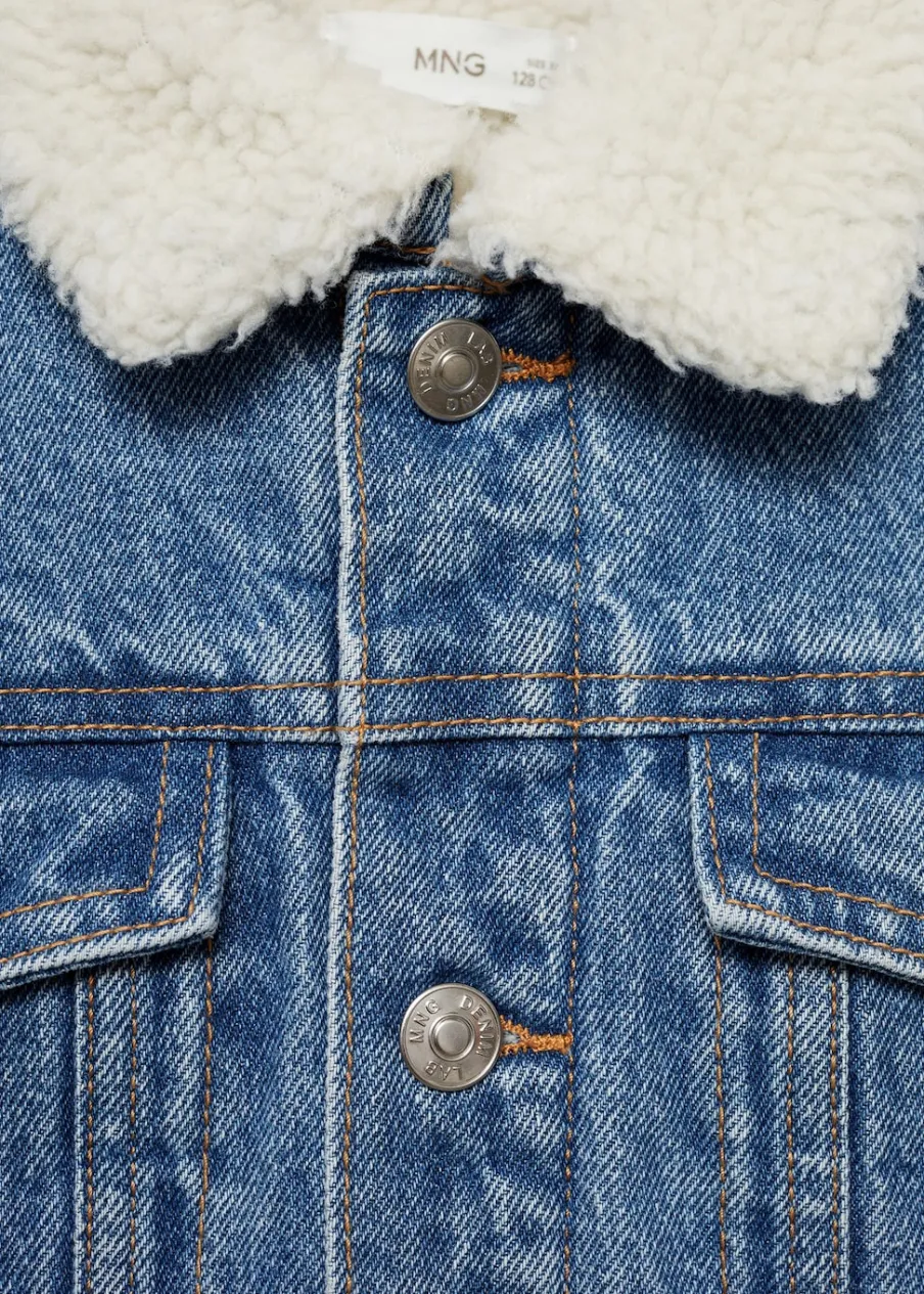 Tkanina bawełniana w dżinsowym stylu. Model prosty. Futrzany kołnierz. Długi rękaw z guzikami na mankietach. Dwie kieszenie z patkami na guzik na klatce piersiowej. Dwie kieszenie boczne. Boczne szlufki w pasie. Futrzana podszewka z baranka. Zapięcie z przodu na guziki. Klasyczny kołnierzyk.