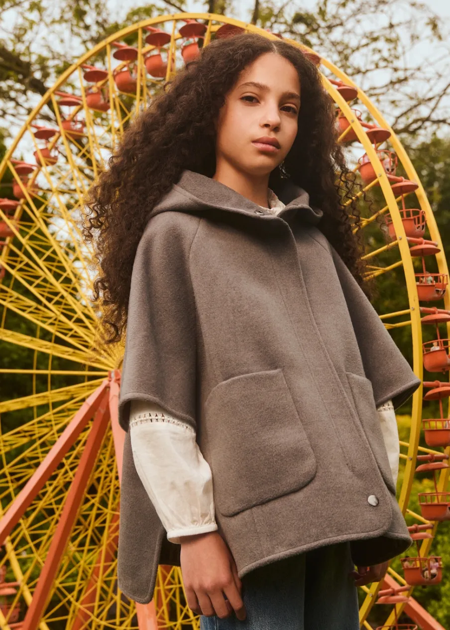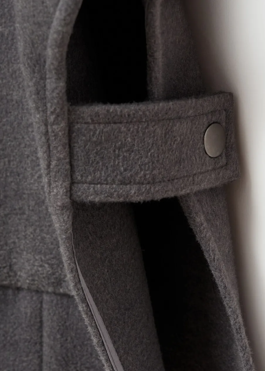 Golf. Model oversize. Szeroki rękaw trzy czwarte. Kryte zapięcie na guziki z przodu. Bez podszewki. Fason o średniej długości.