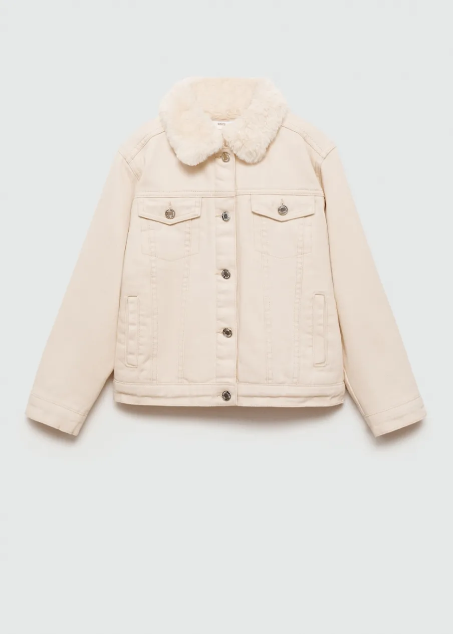 Kolekcja Powrót do szkoły. Tkanina bawełniana w dżinsowym stylu. Model prosty. Koszulowy kołnierz. Futrzany kołnierz. Futrzana podszewka. Cztery kieszenie. Zapięcie na guziki.