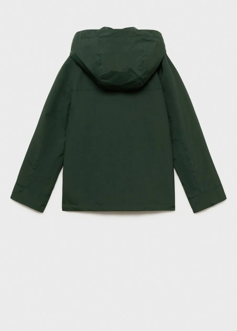 Nieprzemakalny materiał. Wewnętrzna podszewka. Kaptur. Dwie kieszenie z patkami z przodu. Dwie kieszenie z wypustkami z przodu. Długi rękaw. Zapięcie na zamek z przodu.