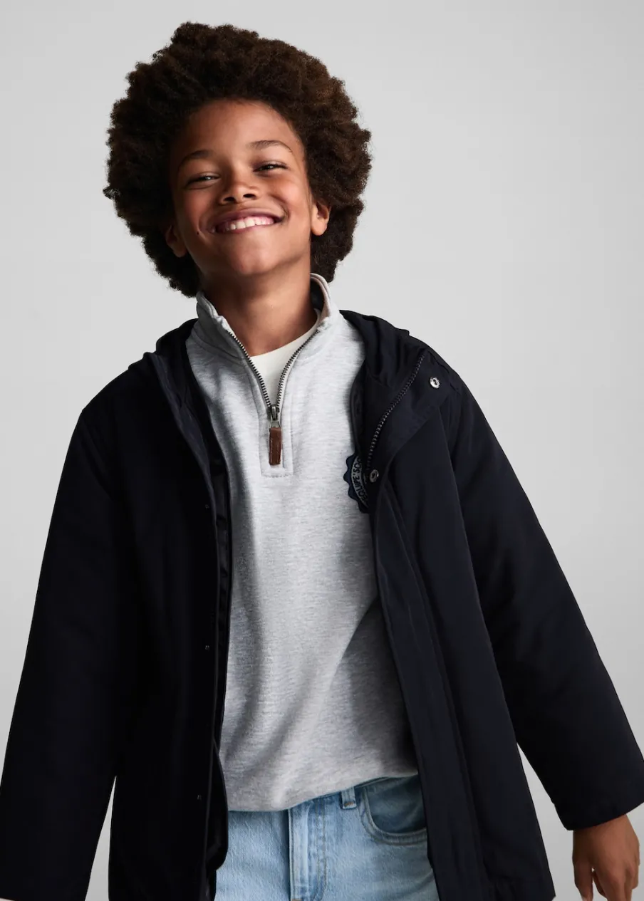 Kolekcja Powrót do szkoły. Model prosty. Model długi. Długi rękaw. Golf. Odpinana podszewka. Kryte zapięcie na suwak. Zapięcie na zatrzaskowe guziki.