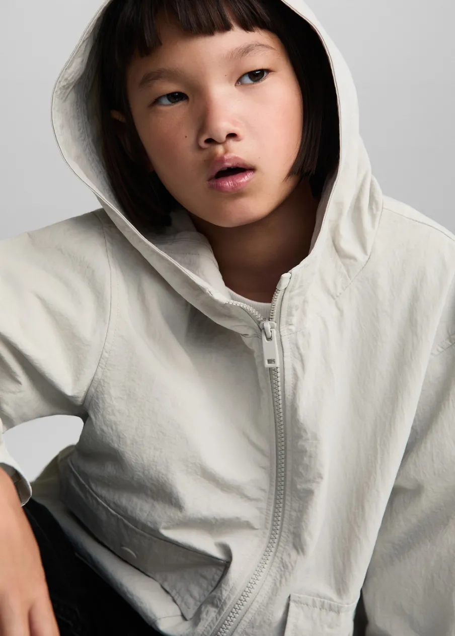 Model prosty. Nieprzemakalny materiał. Wewnętrzna podszewka. Kaptur. Długi rękaw. Z przodu dwie kieszenie z zapięciem na zatrzask. Zapięcie na suwak.