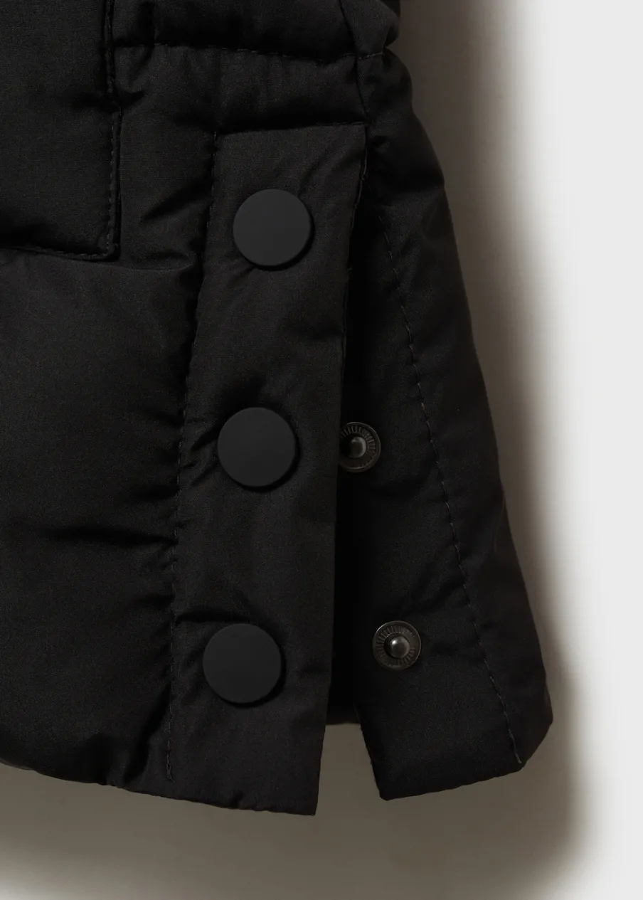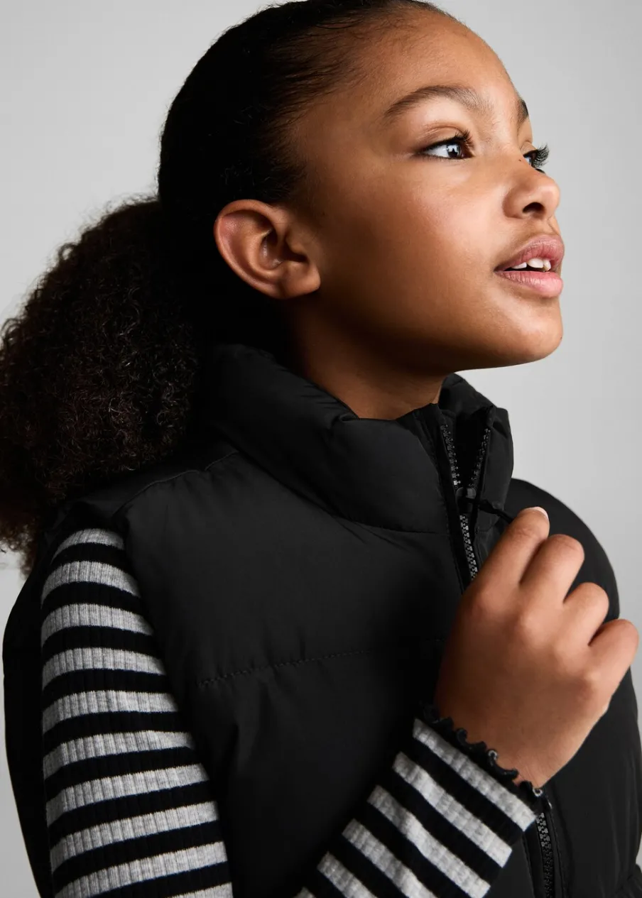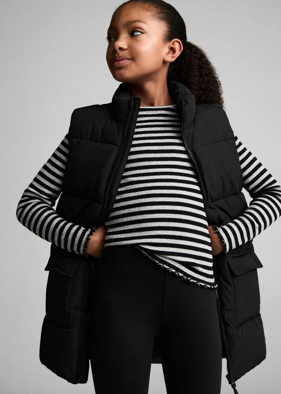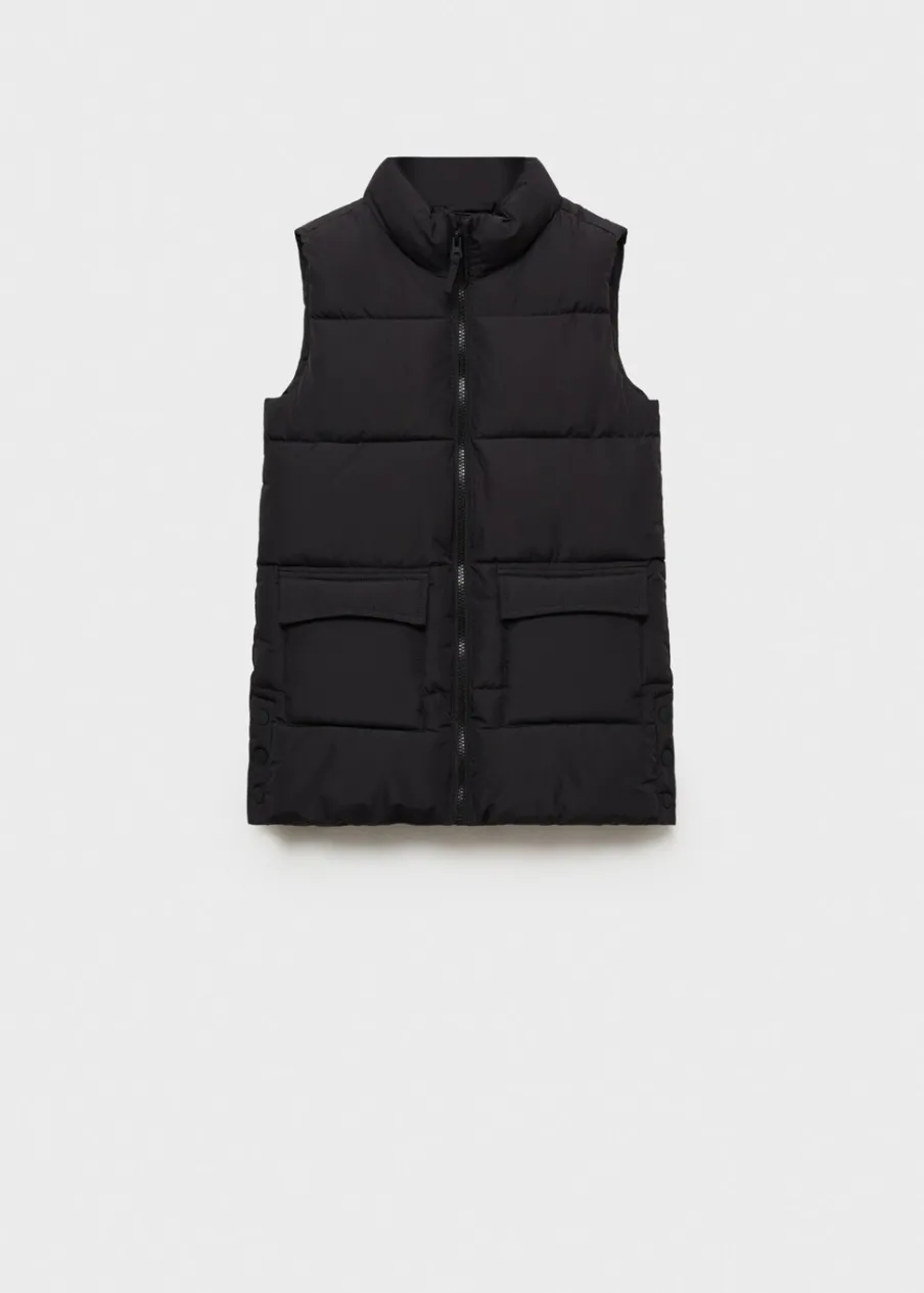 Model pikowany. Golf. Bez rękawów. Dwie kieszenie z przodu. Rozcięcie u dołu z zapięciem na guziki. Wewnętrzna etykieta na dane osobowe. Zapięcie na guziki z przodu.