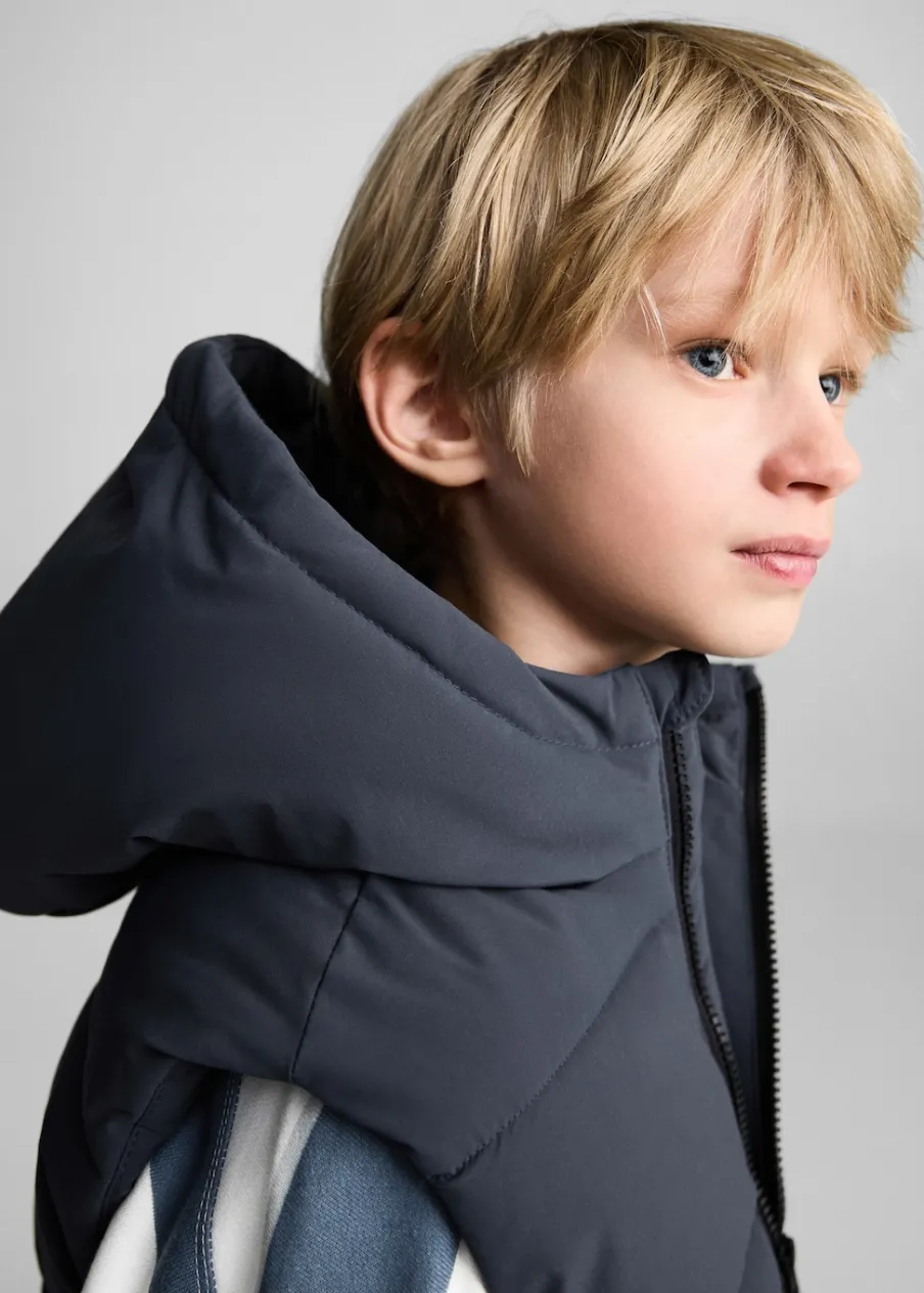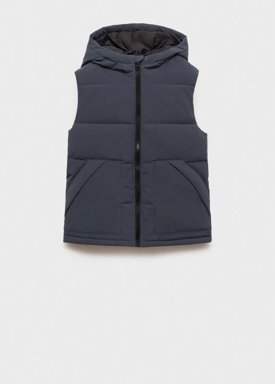 Model pikowany. Kaptur. Bez rękawów. Dwie kieszenie z wypustkami z przodu. Zapięcie na zamek z przodu.