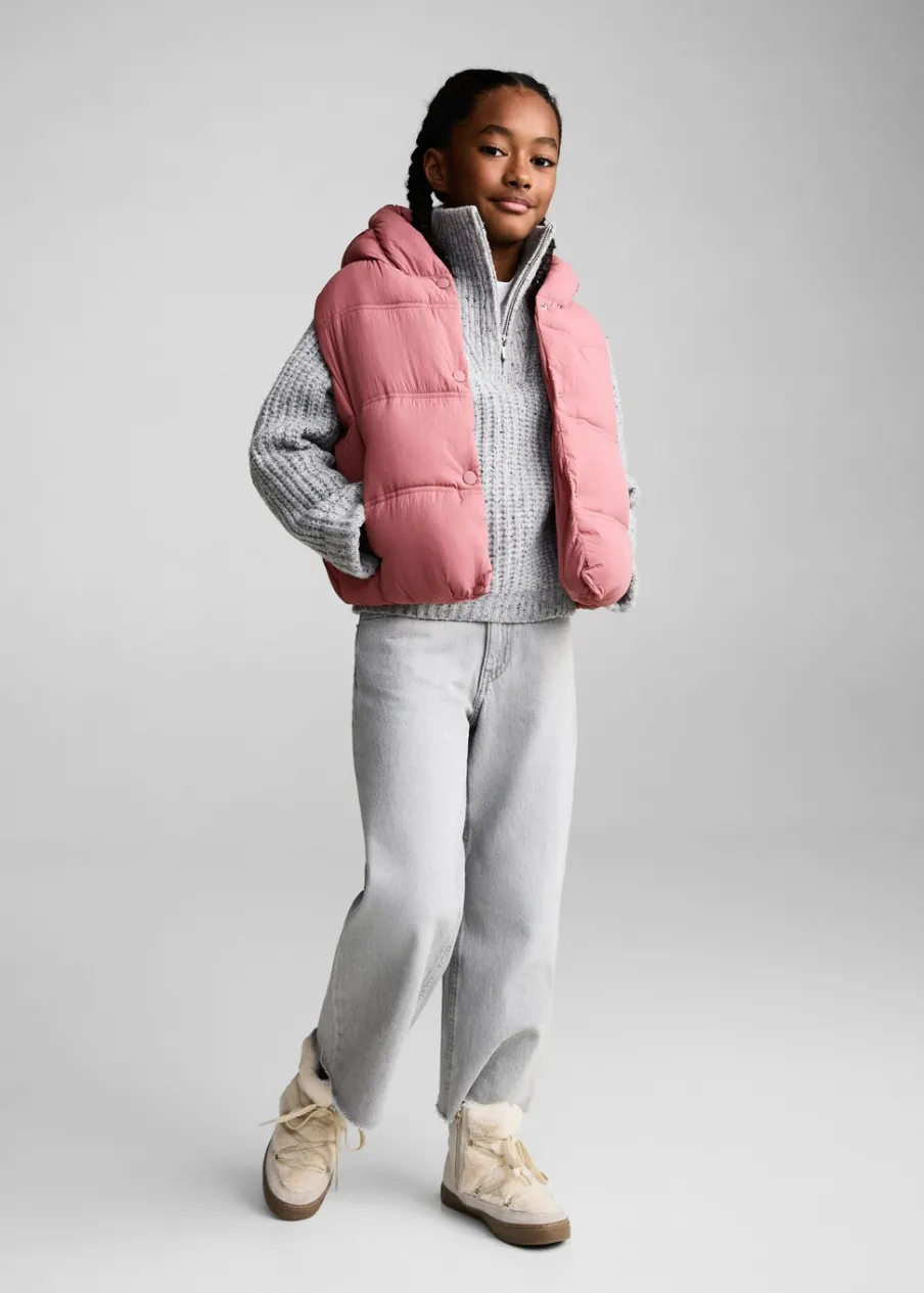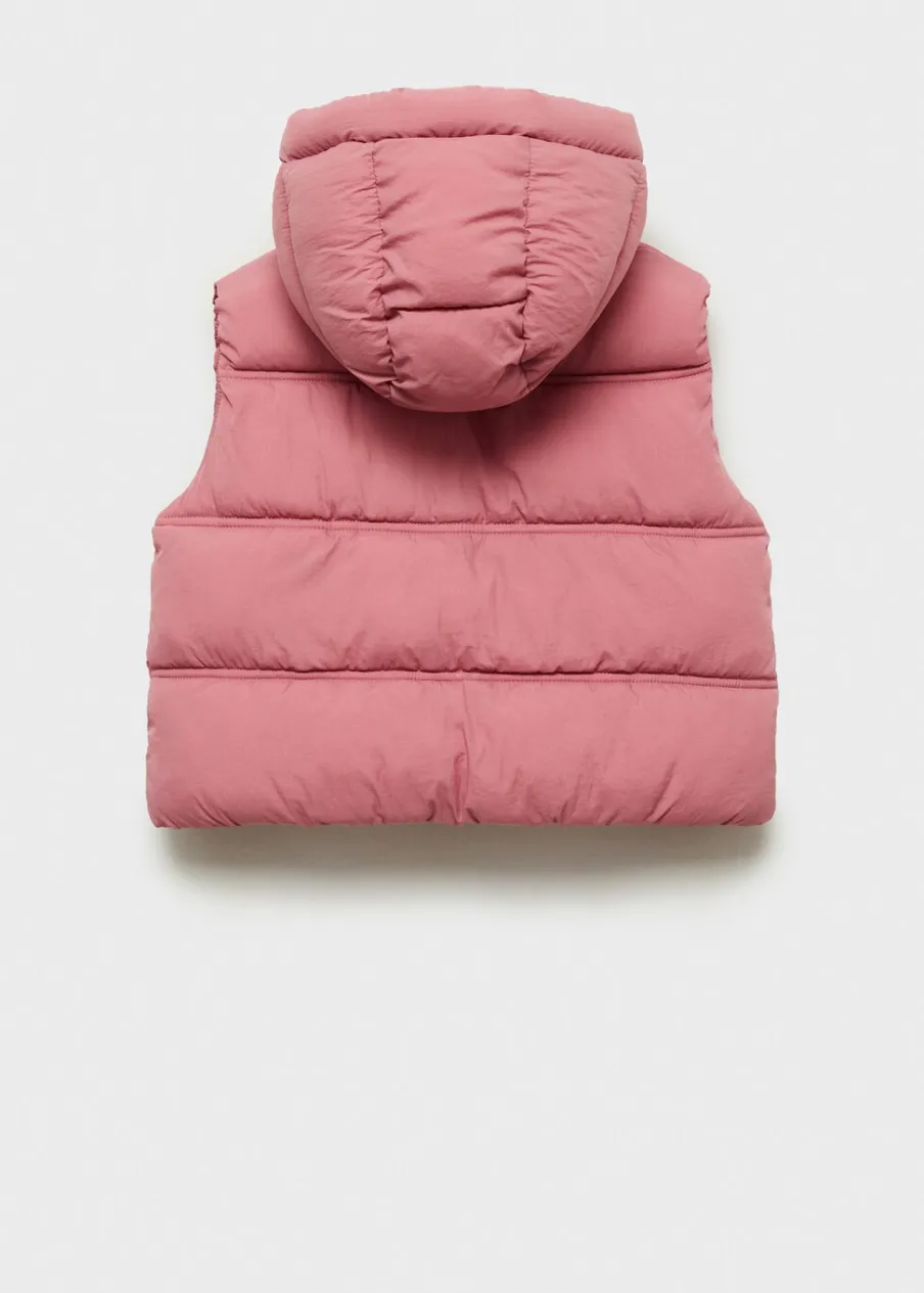 Model pikowany. Krótki krój. Kaptur. Bez rękawów. Dwie kieszenie boczne. Etykieta na dane kontaktowe. Zapięcie na zatrzaskowe guziki.