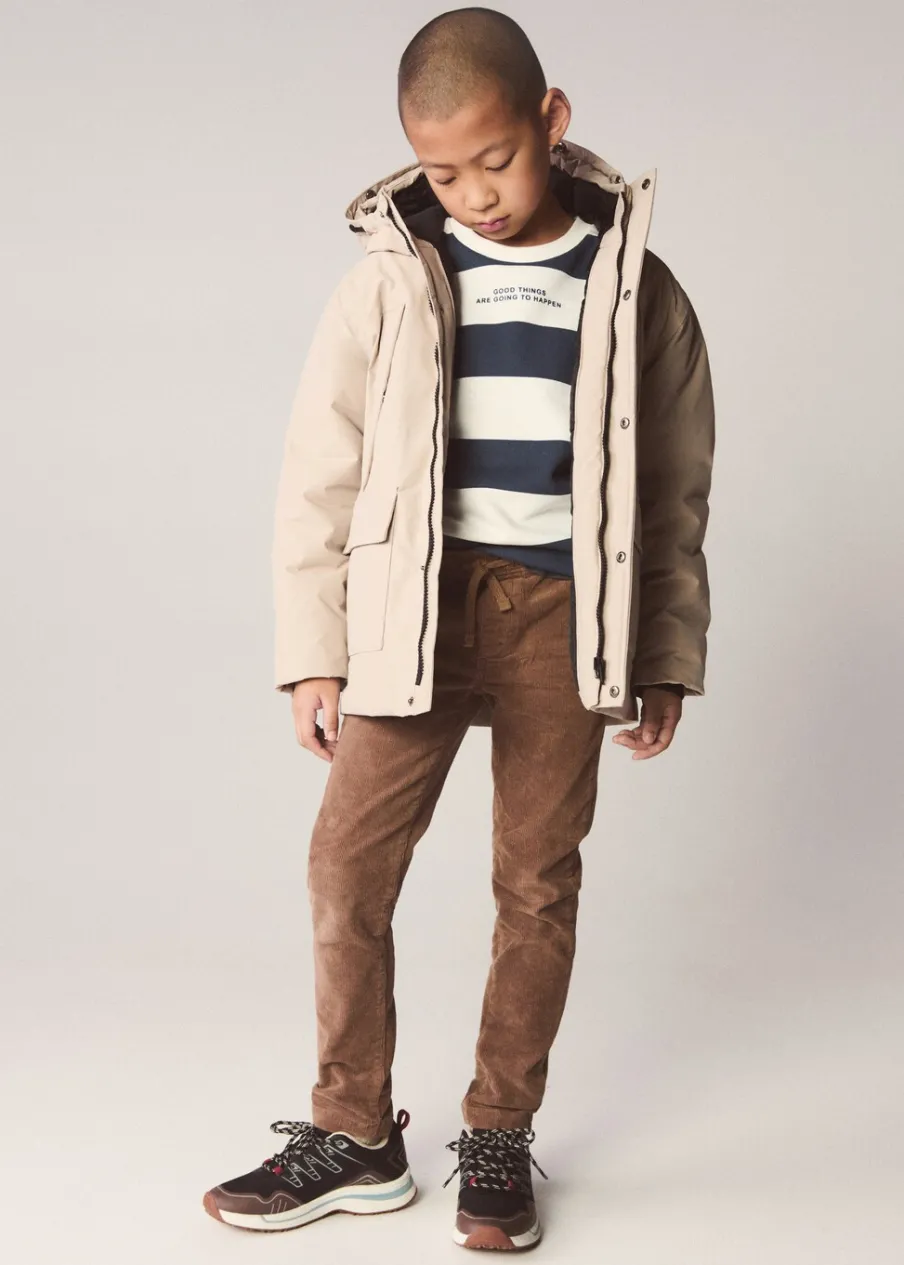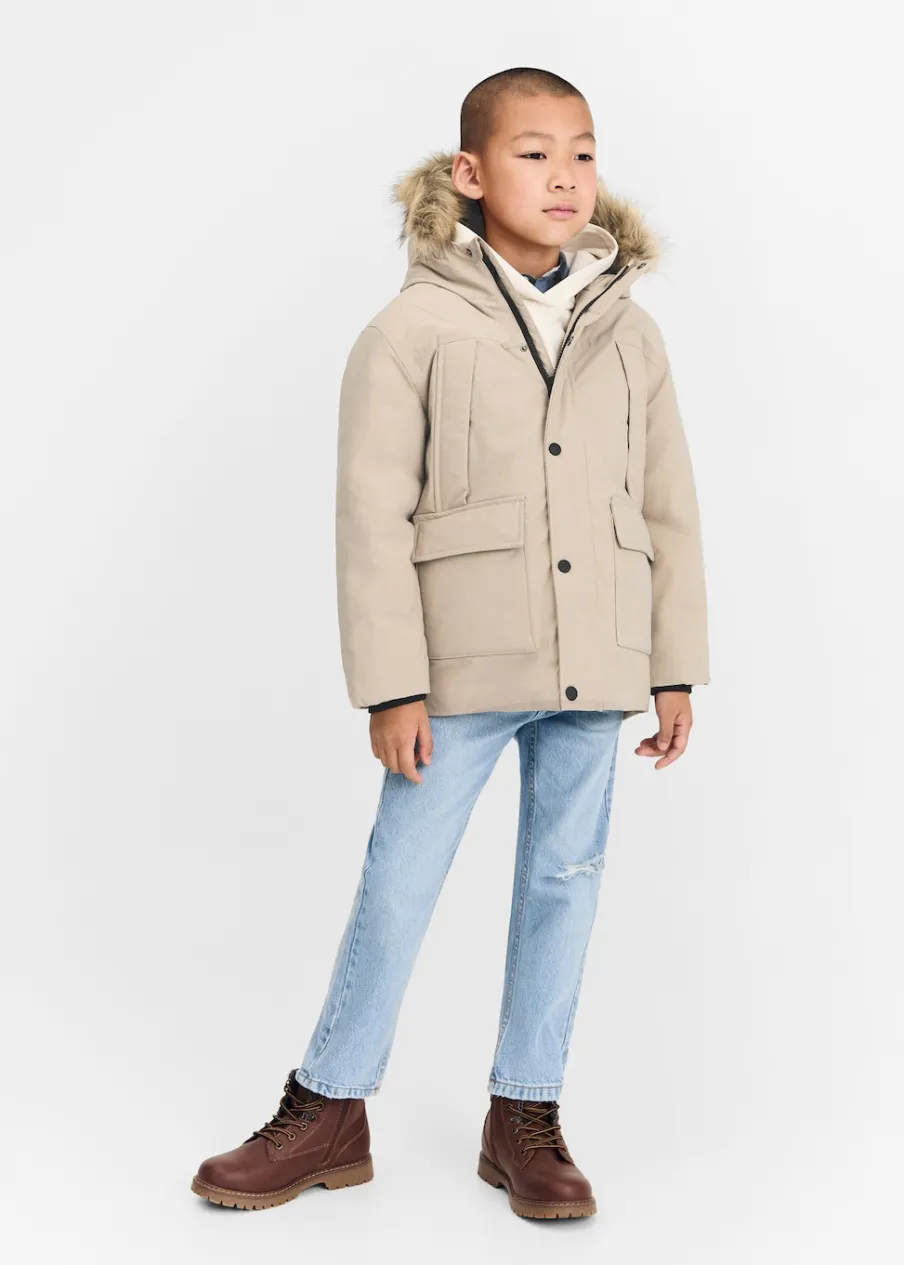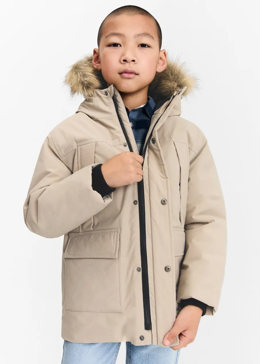 Kolekcja Powrót do szkoły. Golf. Odpinany kaptur z syntetycznym futerkiem. Zapięcie na suwak i guzik. Etykieta na dane kontaktowe. Zapięcie na suwak i zatrzaskowe guziki. Model prosty. Długi rękaw. Model pikowany. Cztery kieszenie. Wewnętrzna podszewka.