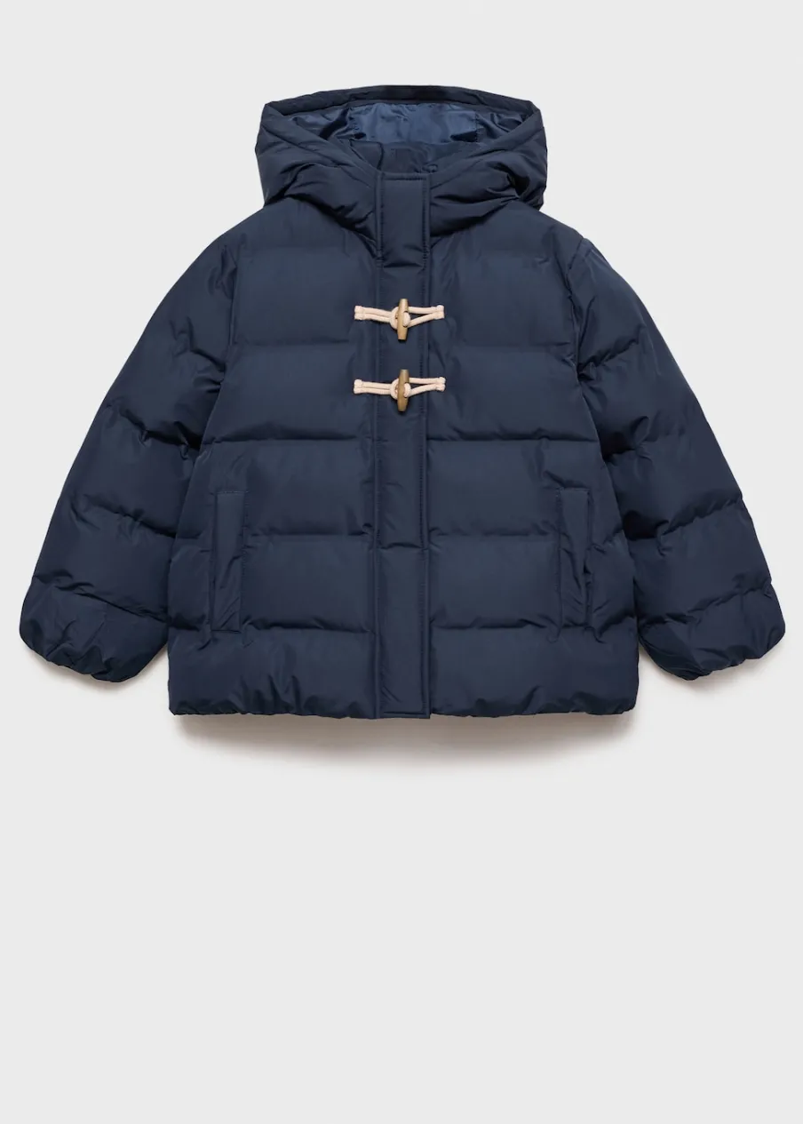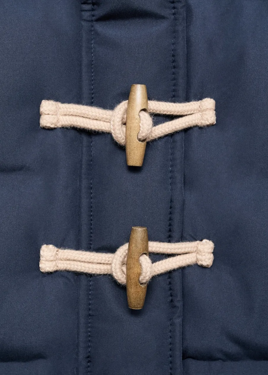 Model pikowany. Model prosty. Golf. Kaptur. Długi rękaw. Dwie kieszenie z przodu. Guziki z imitacji drewna. Kryte zapięcie na suwak i zatrzaskowe guziki.