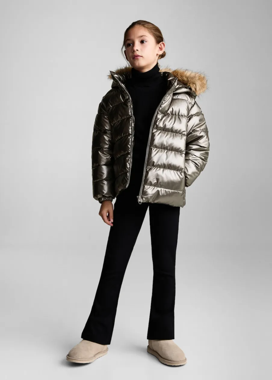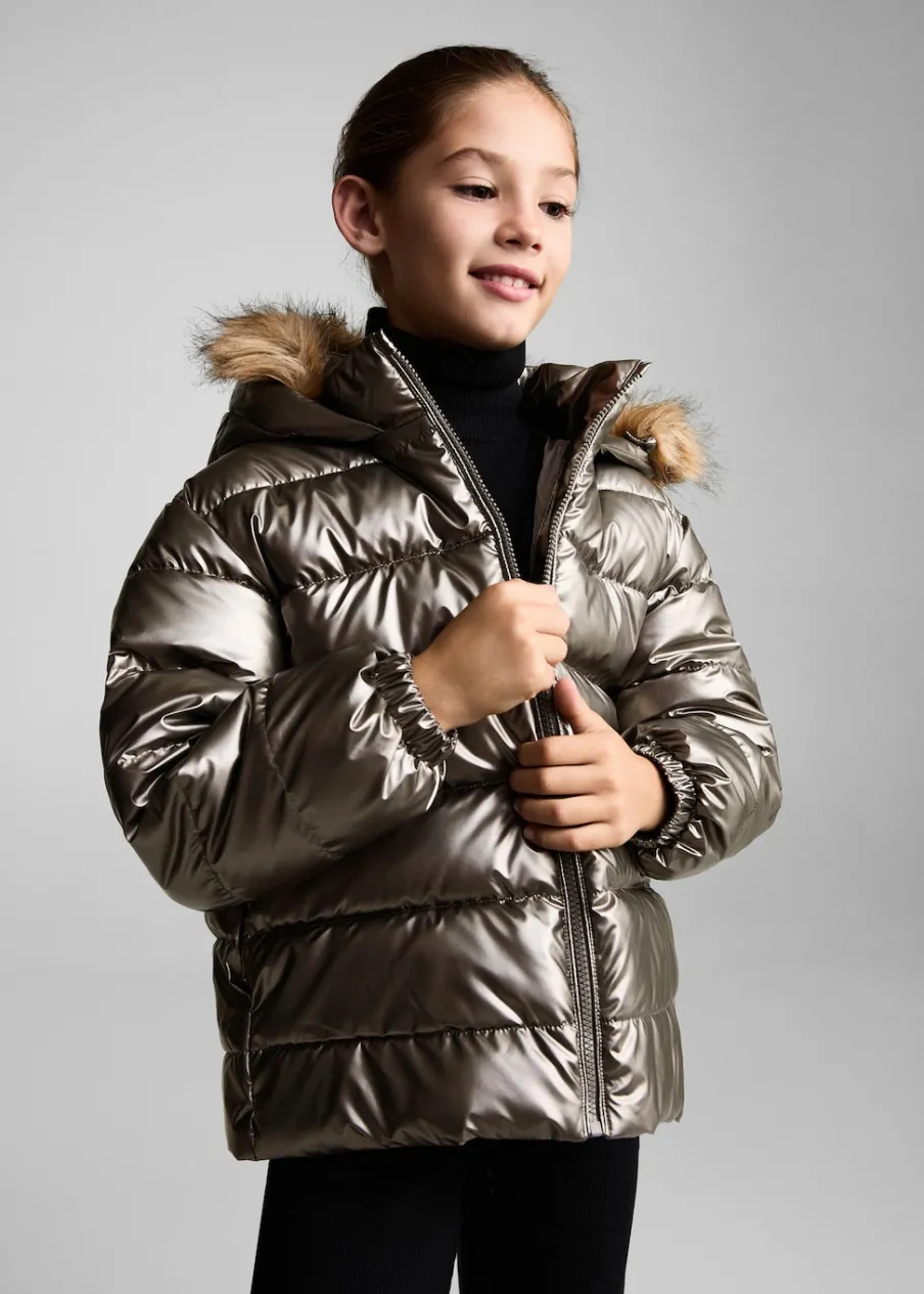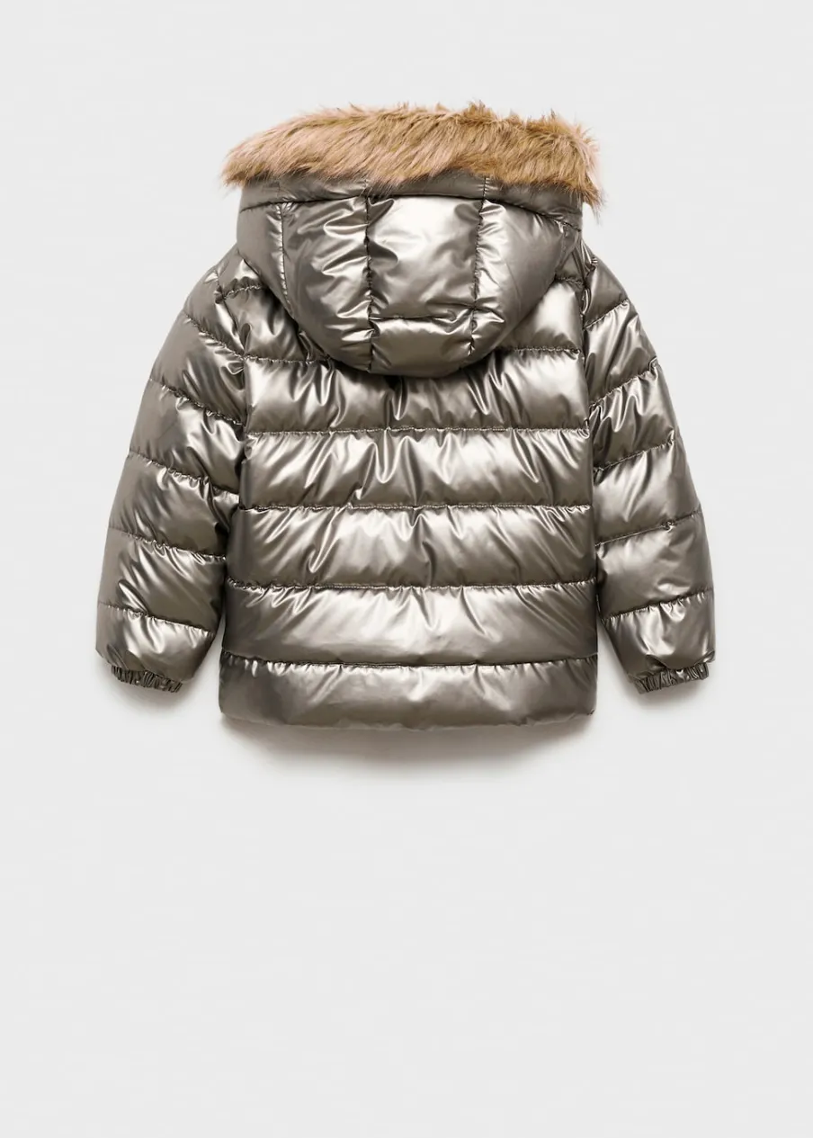 Model prosty. Odpinany kaptur z syntetycznym futerkiem. Odpinany kaptur. Długi rękaw. Dwie kieszenie boczne. Wewnętrzna podszewka. Etykieta na dane kontaktowe. Zapięcie na zamek i guzik z przodu. Model pikowany.