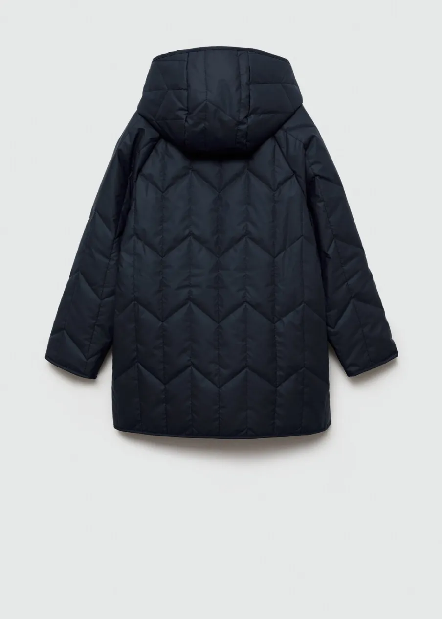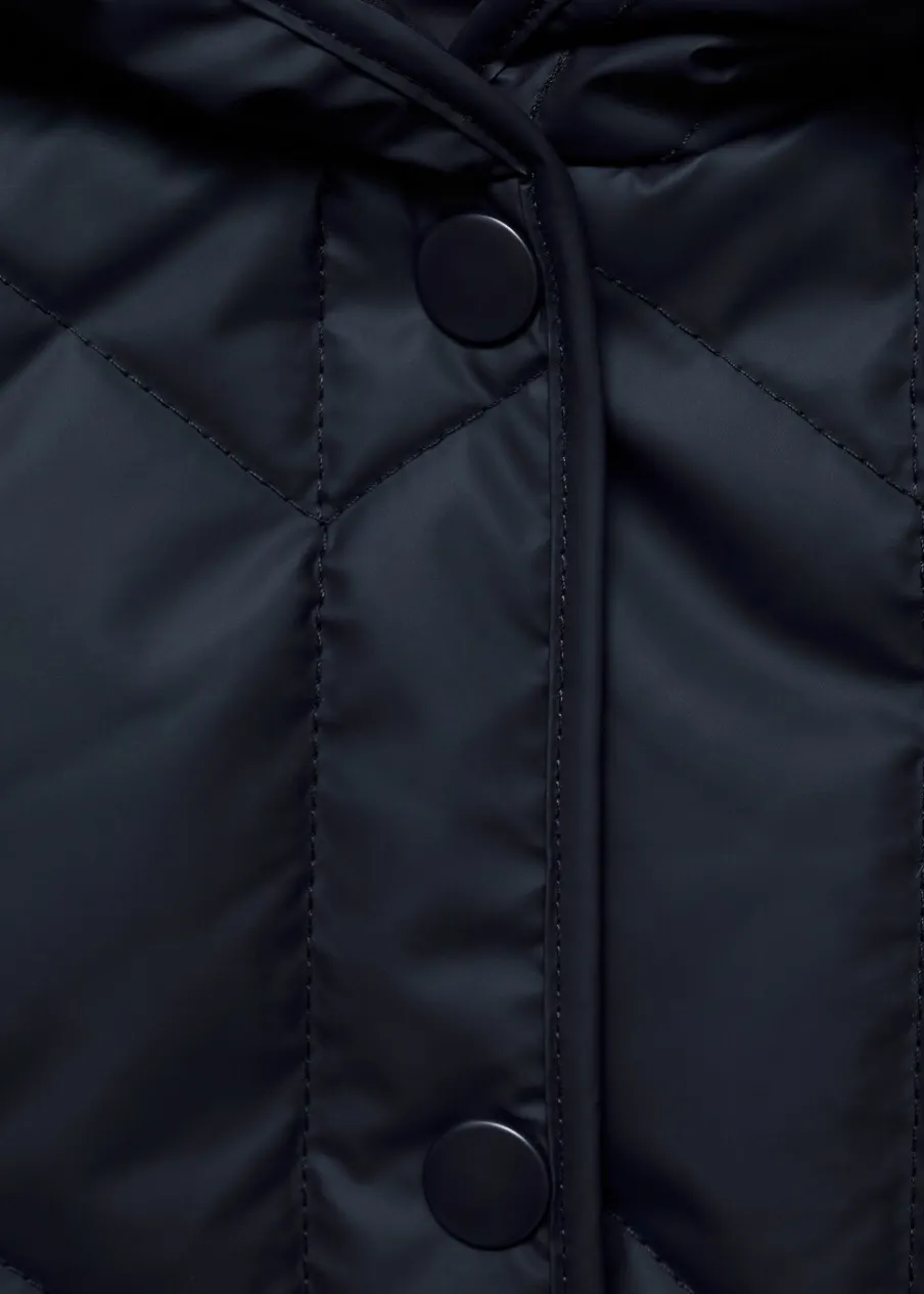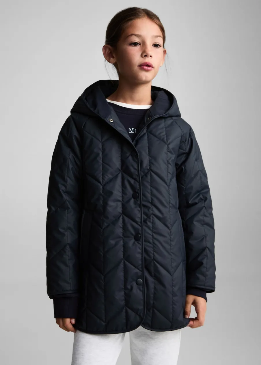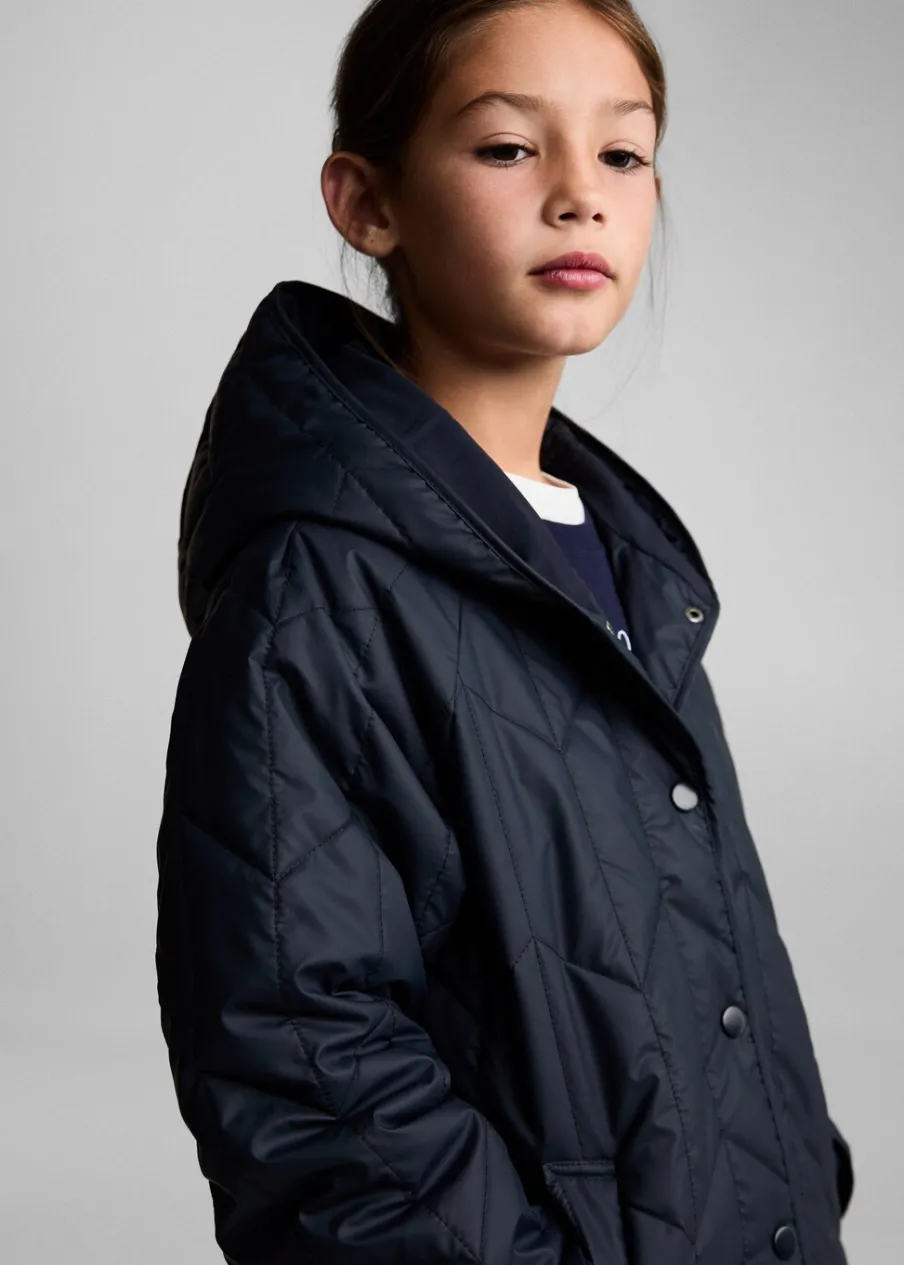 Powrót do szkoły. Model pikowany. Model prosty. Kaptur. Długi rękaw. Wewnętrzna podszewka. Wewnętrzna etykieta na dane osobowe. Zapięcie na zatrzaski z przodu.