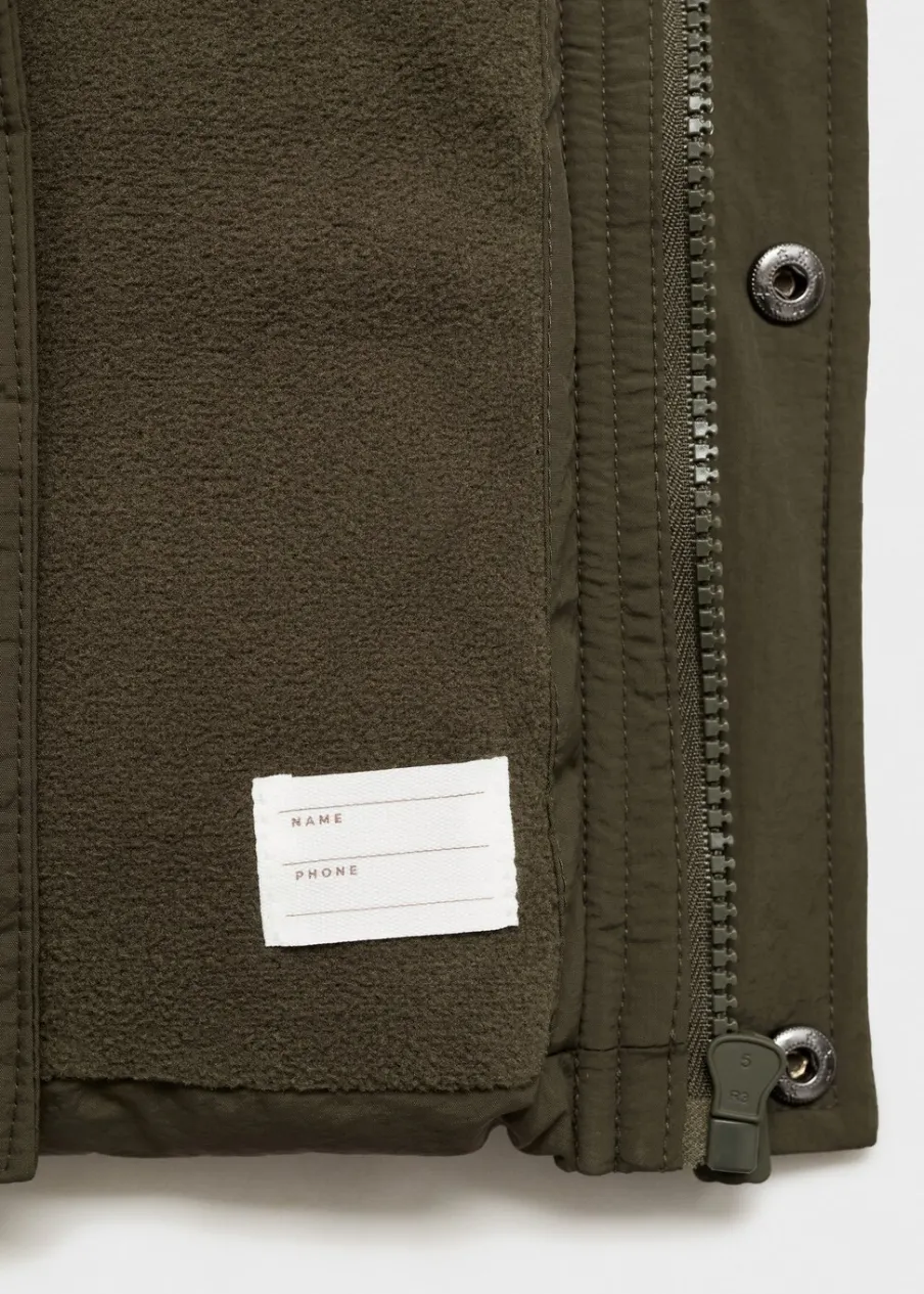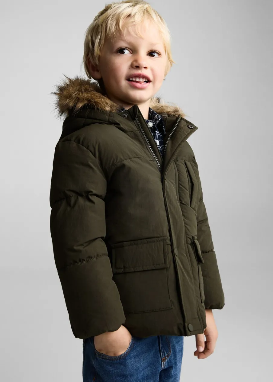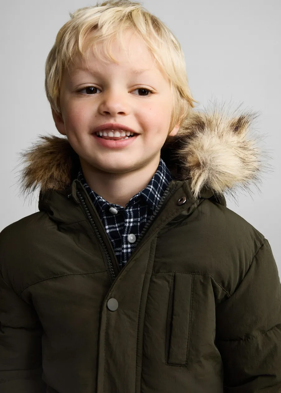 Model pikowany. Model prosty. Odpinany kaptur z syntetycznym futerkiem. Trzy kieszenie z przodu. Długi rękaw. Polarowa podszewka. Etykieta na dane kontaktowe. Zapięcie na suwak i zatrzaskowe guziki.