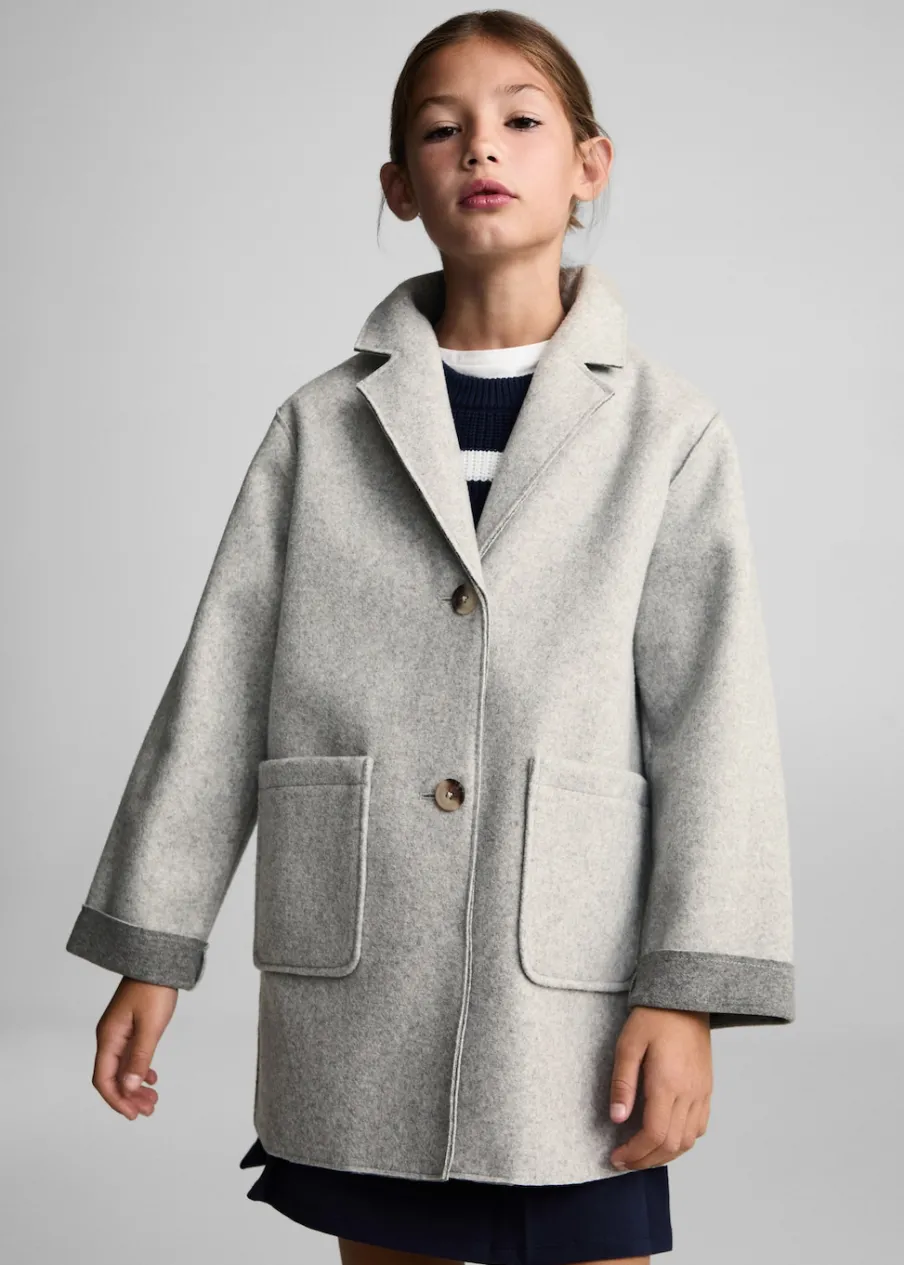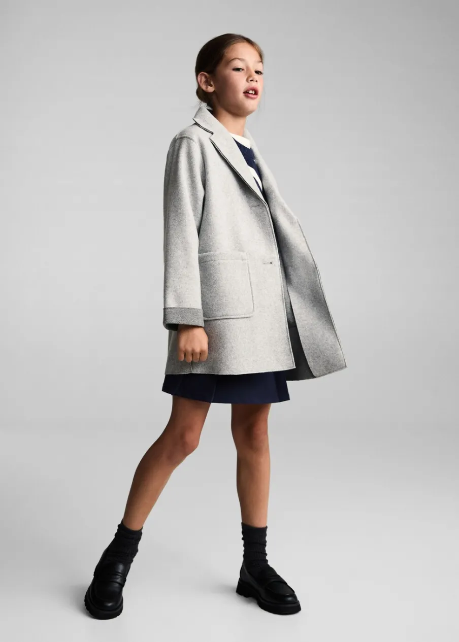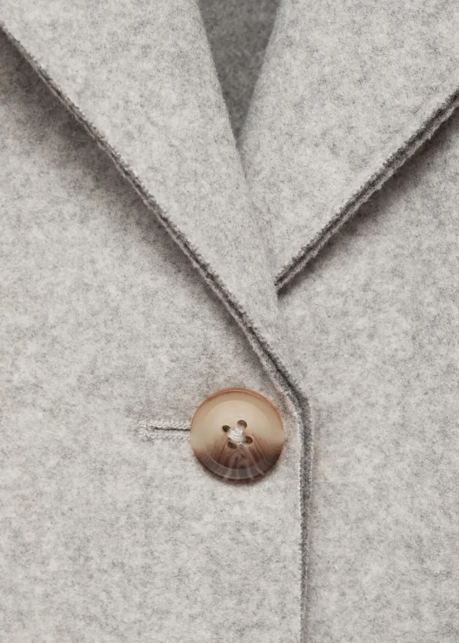 OpisKołnierz z klapami. Długi rękaw. Model prosty. Kieszenie nakładane. Zapięcie na guziki.