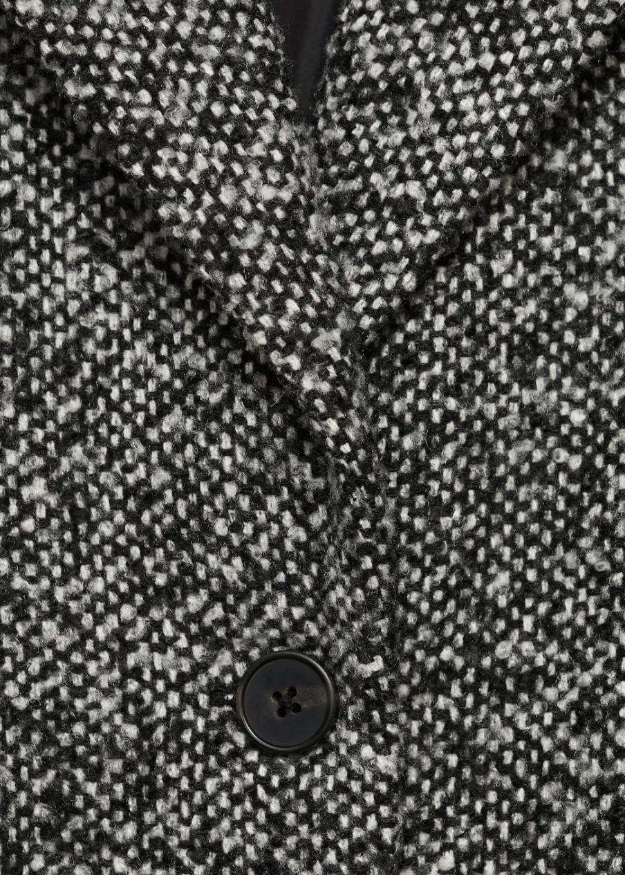 OpisKołnierz z klapami. Dwie kieszenie boczne. Zapięcie na guziki z przodu. Długi rękaw. Model prosty. Powrót do sz…