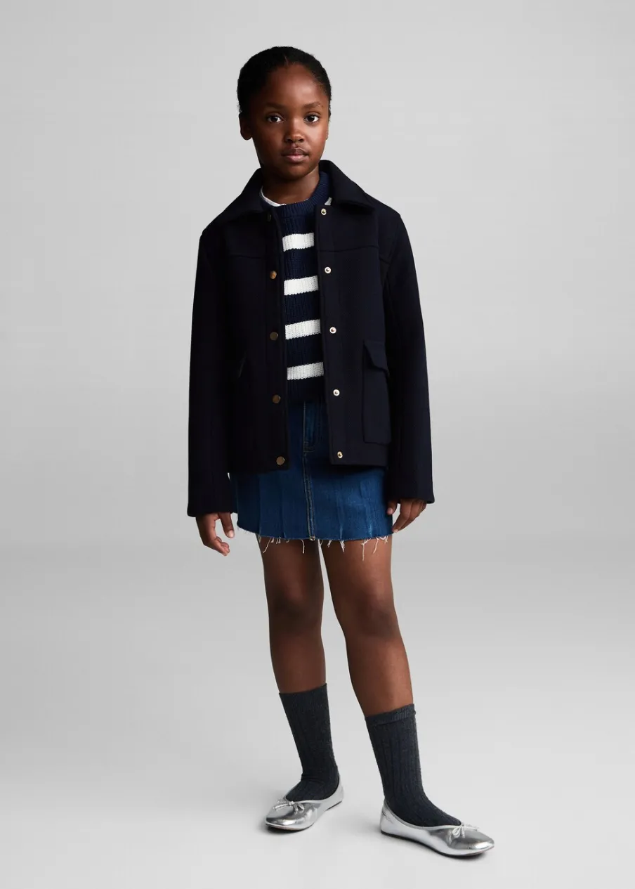 OpisModel prosty. Koszulowy kołnierz. Długi rękaw. Dwie kieszenie z przodu. Zapięcie na guziki.