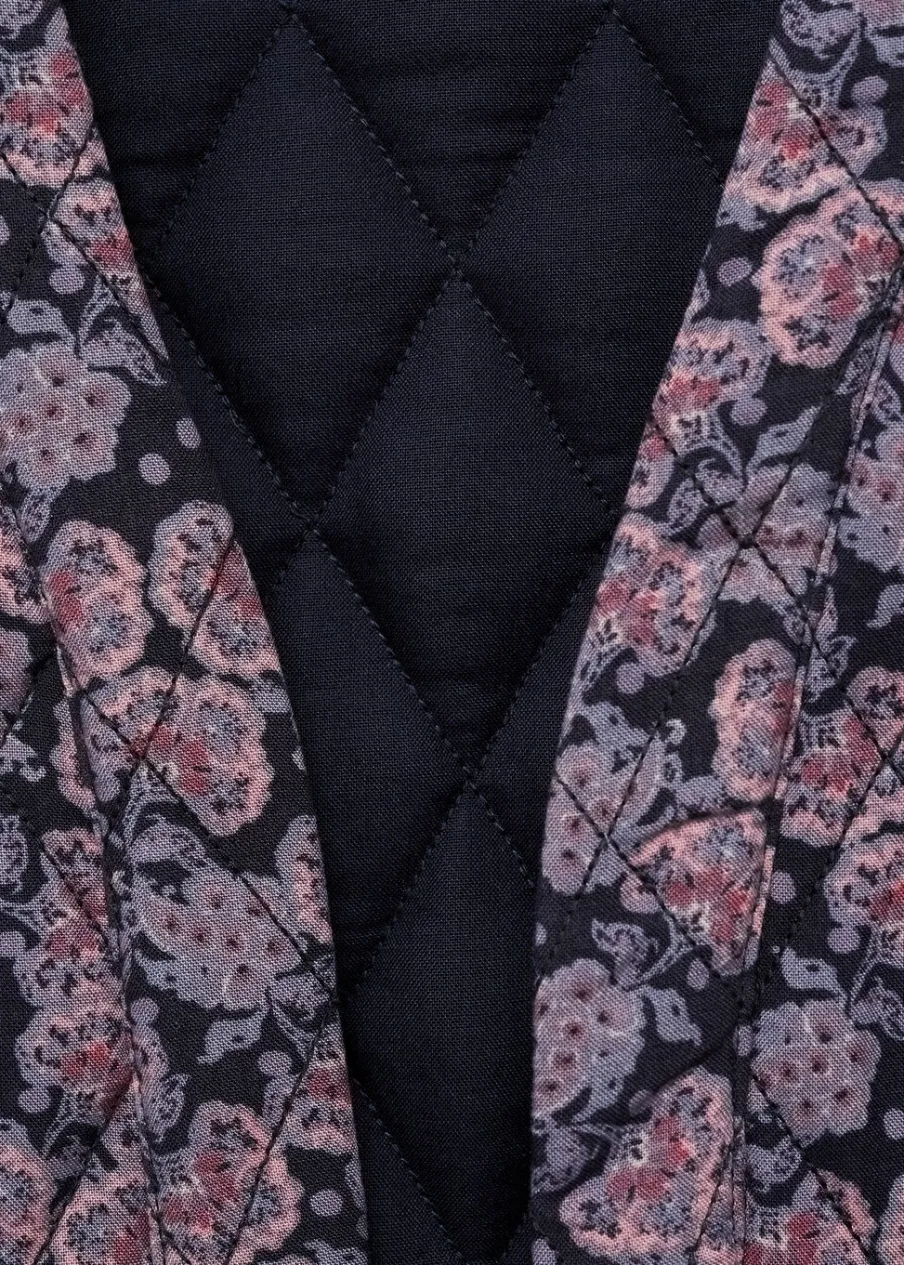 Kwiatowy wzór. Model prosty. Dekolt V. Dwie kieszenie z przodu. Długi rękaw. Bez zapięcia. Tkanina z wiskozy.