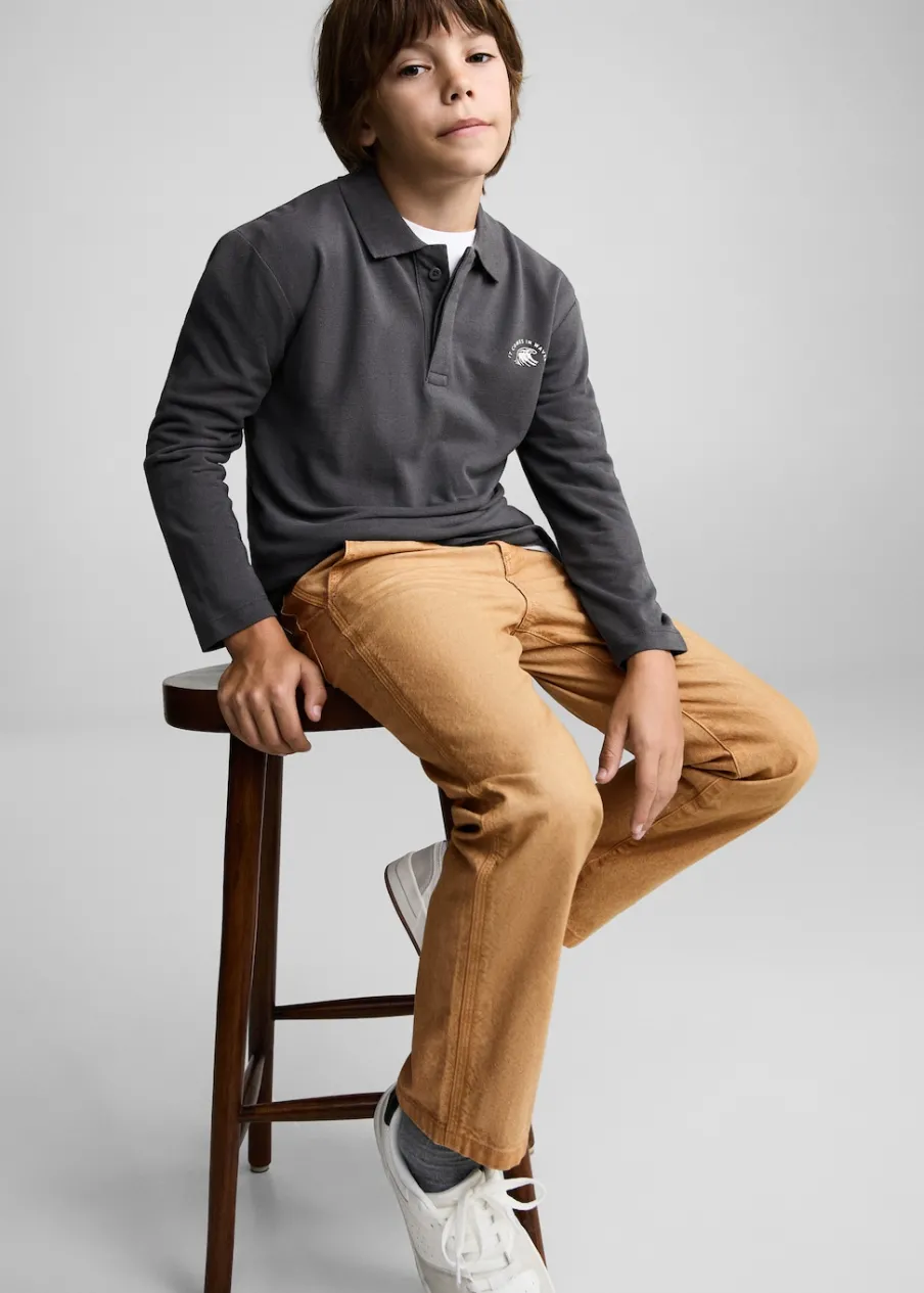 Tkanina bawełniana w dżinsowym stylu. Model prosty. Model długi. Cztery kieszenie. Zapięcie na suwak i guzik.