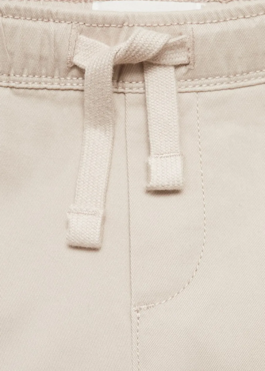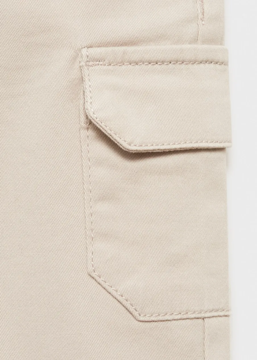 Tkanina z bawełną. Model prosty. Model długi. Kieszenie cargo. Dwie kieszenie boczne. Elastyczny pas z wiązanym zapięciem.