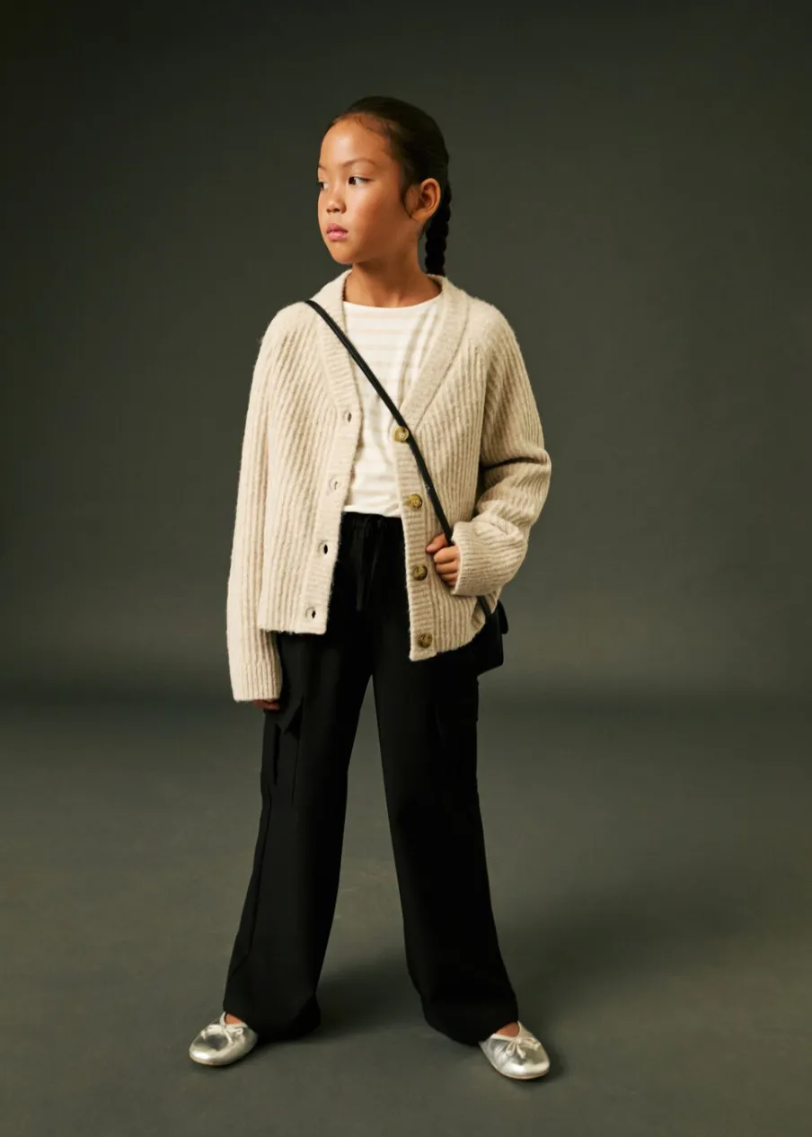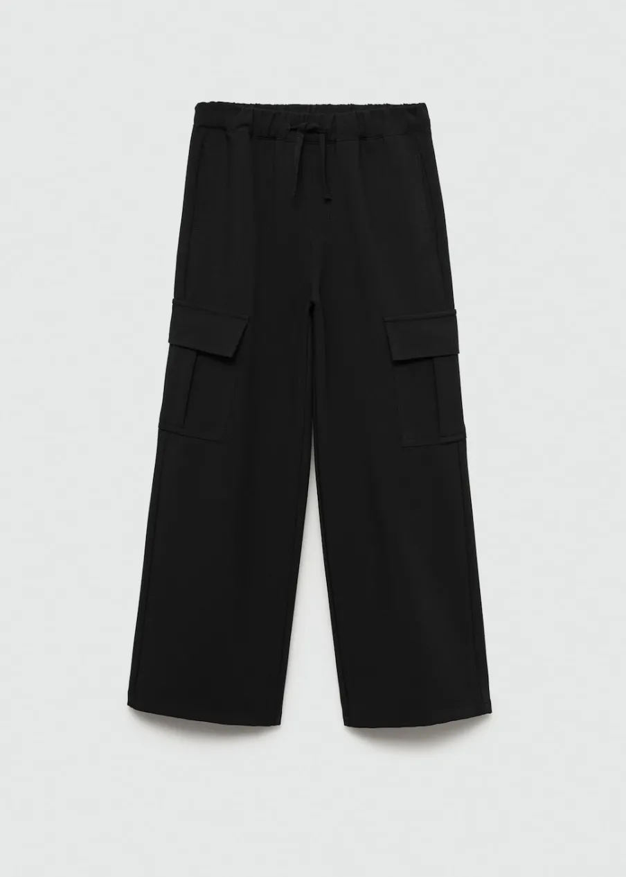Elastyczny pas. Regulowane wiązanie w talii. Powrót do szkoły. Dwie kieszenie cargo. Model prosty.