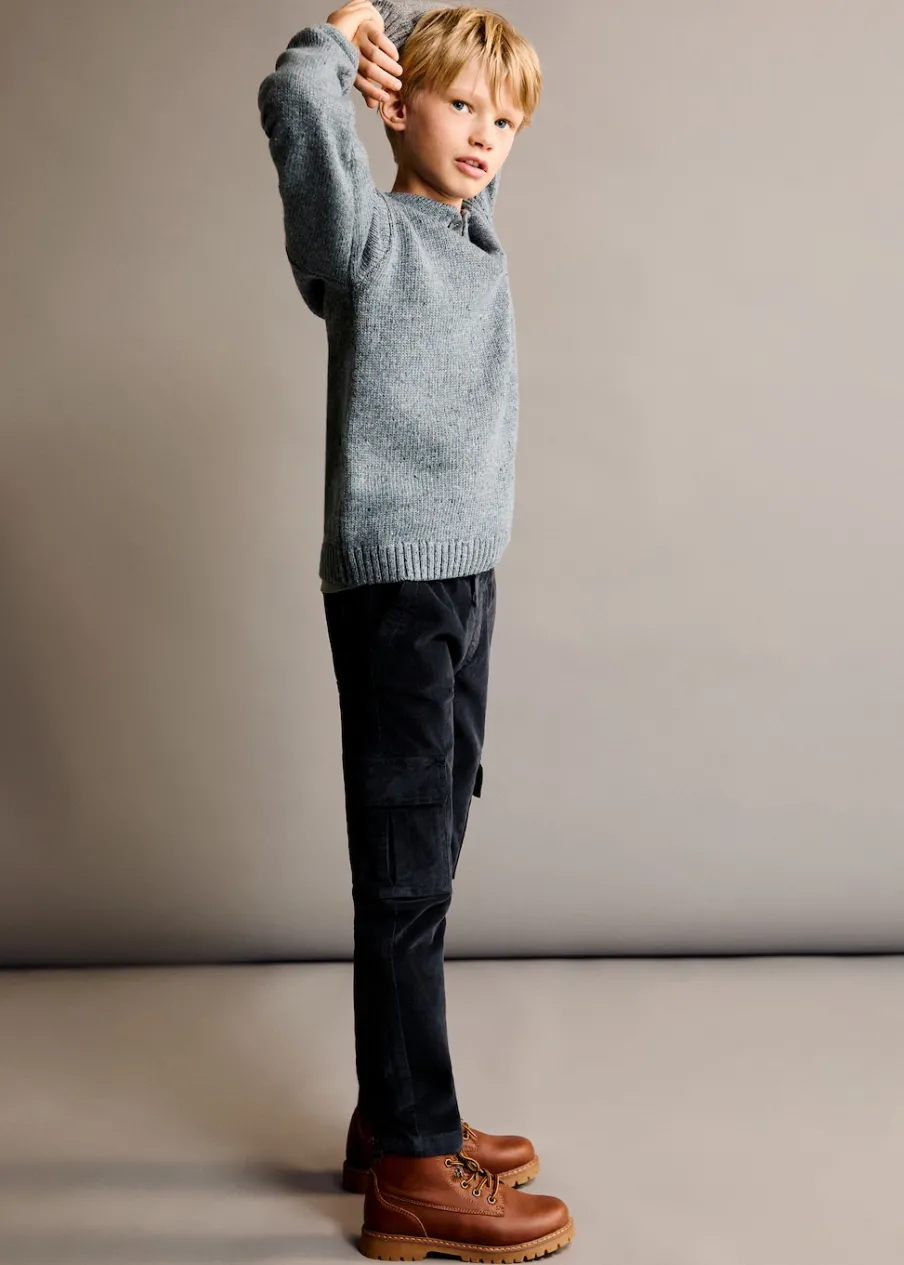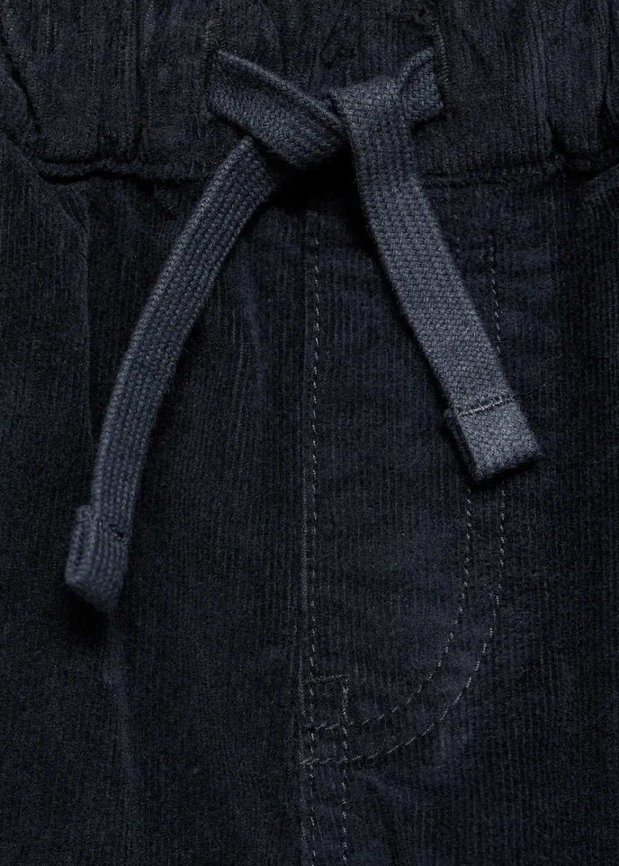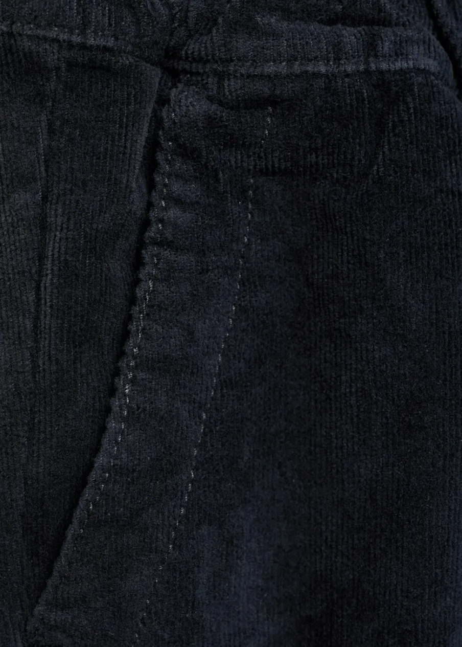 Bawełna 100%. Sztruksowa tkanina. Model prosty. Elastyczny pas ze sznurkiem. Dwie kieszenie boczne. Dwie kieszenie nakładane z tyłu. Dwie kieszenie z patkami na rzepy.