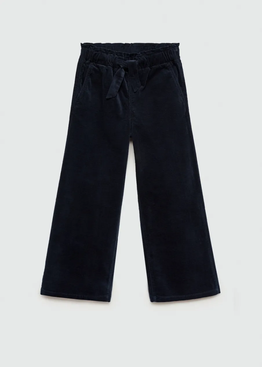 Fason culotte. Tkanina sztruksowa. Dwie kieszenie boczne. Elastyczny pas. Zapięcie na regulowane wiązanie. Bawełniana tkanina.