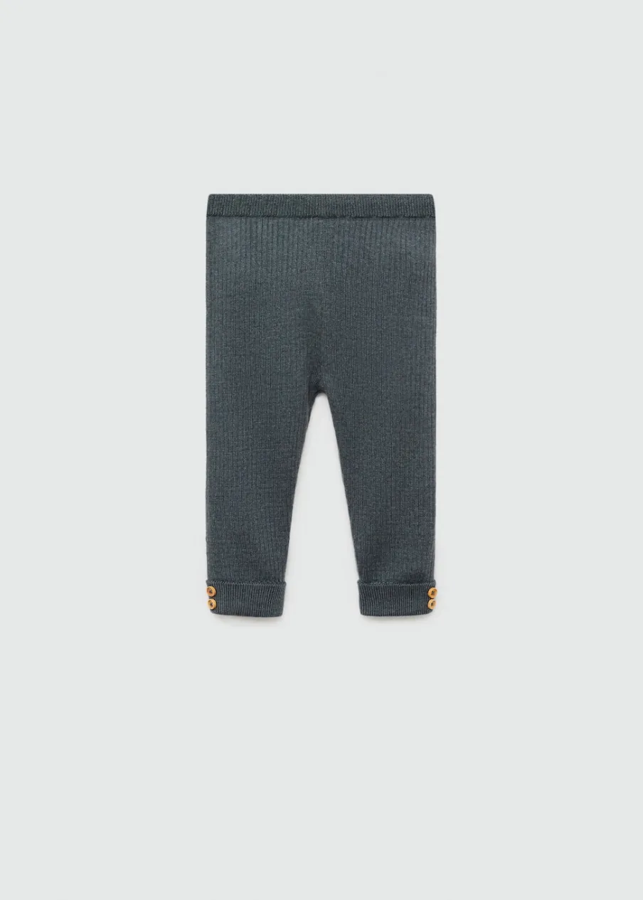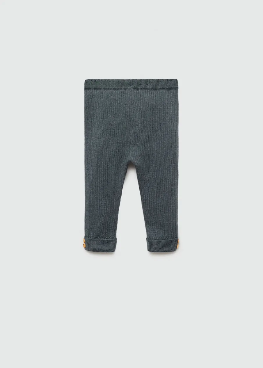 OpisTkanina z bawełną. Prążkowana tekstura. Model prosty. Elastyczny pas. Guziki z imitacji drewna.