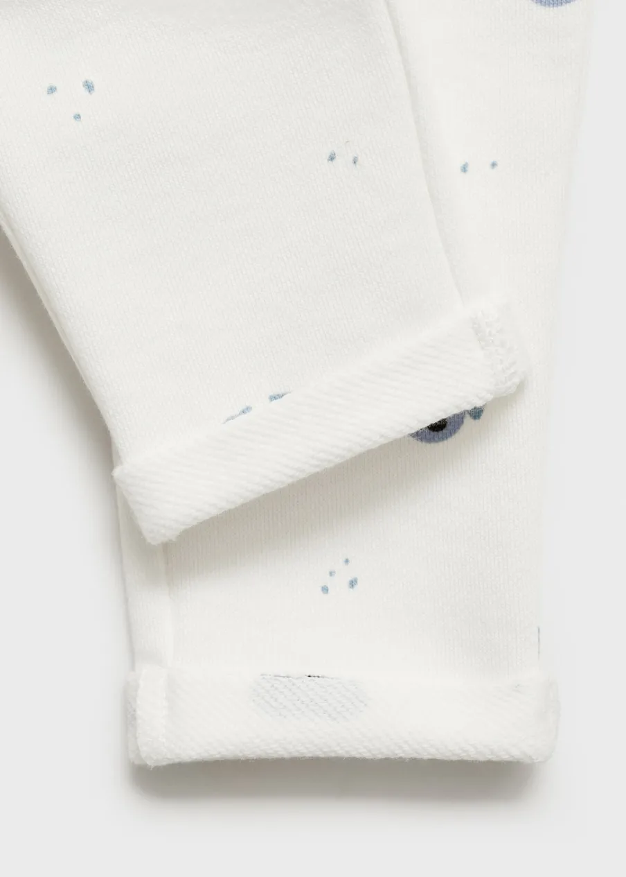 OpisBawełna 100%. Fason jogger. Nadruk. Elastyczny pas ze sznurkiem. Podwinięcie u dołu.