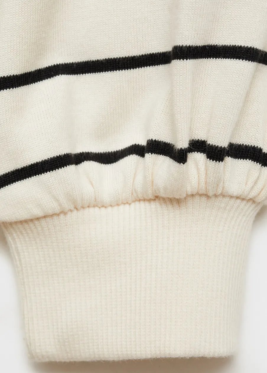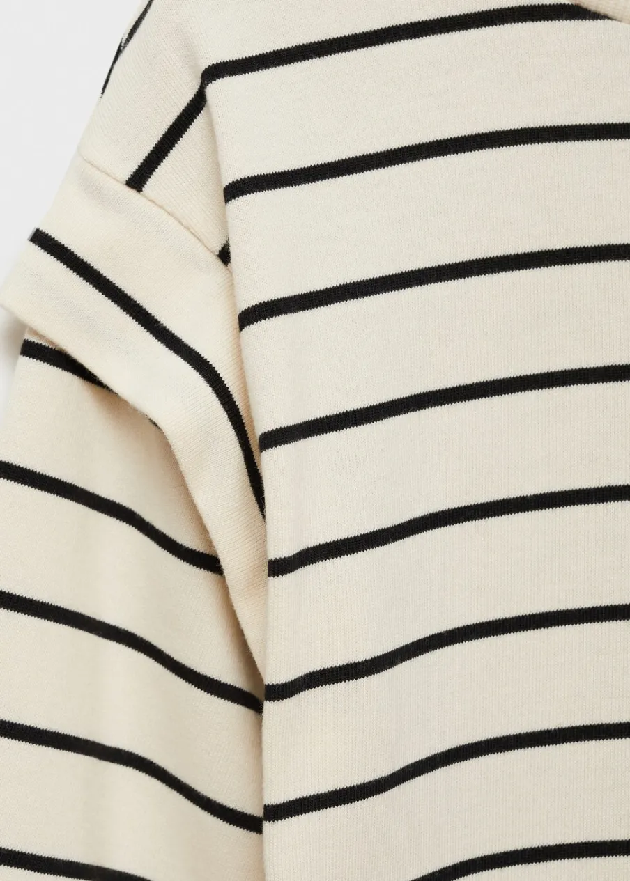 OpisBawełna 100%. Model prosty. Wzór w paski. Krótki krój. Okrągły dekolt. Długi rękaw. Bez zapięcia.