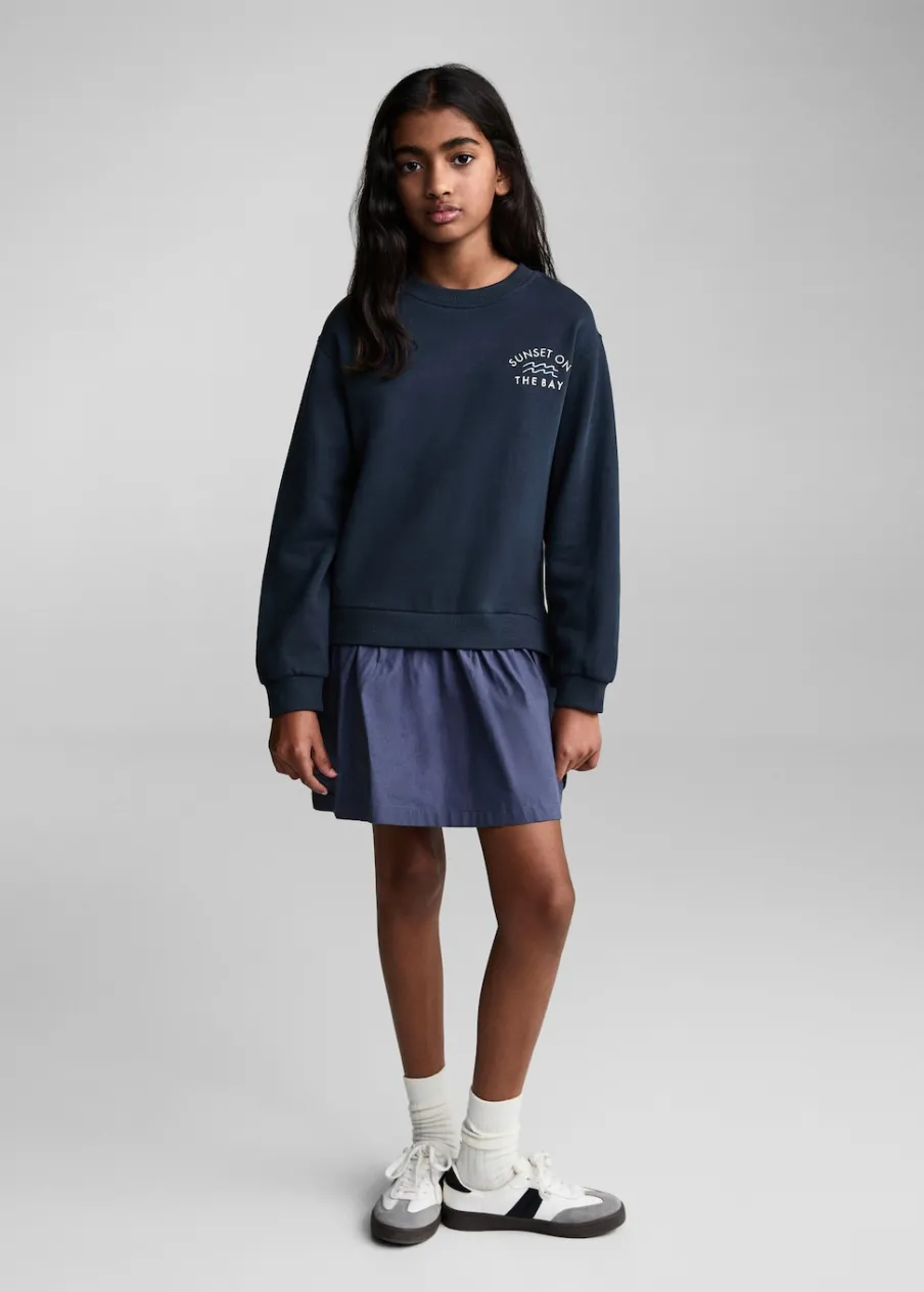 Kolekcja Powrót do szkoły. Bawełna 100%. Model prosty. Haftowany detal. Surferski nadruk. Okrągły dekolt. Długi rękaw. Krótki krój. Spódnica z koła. Dwie kieszenie boczne. Bez zapięcia.