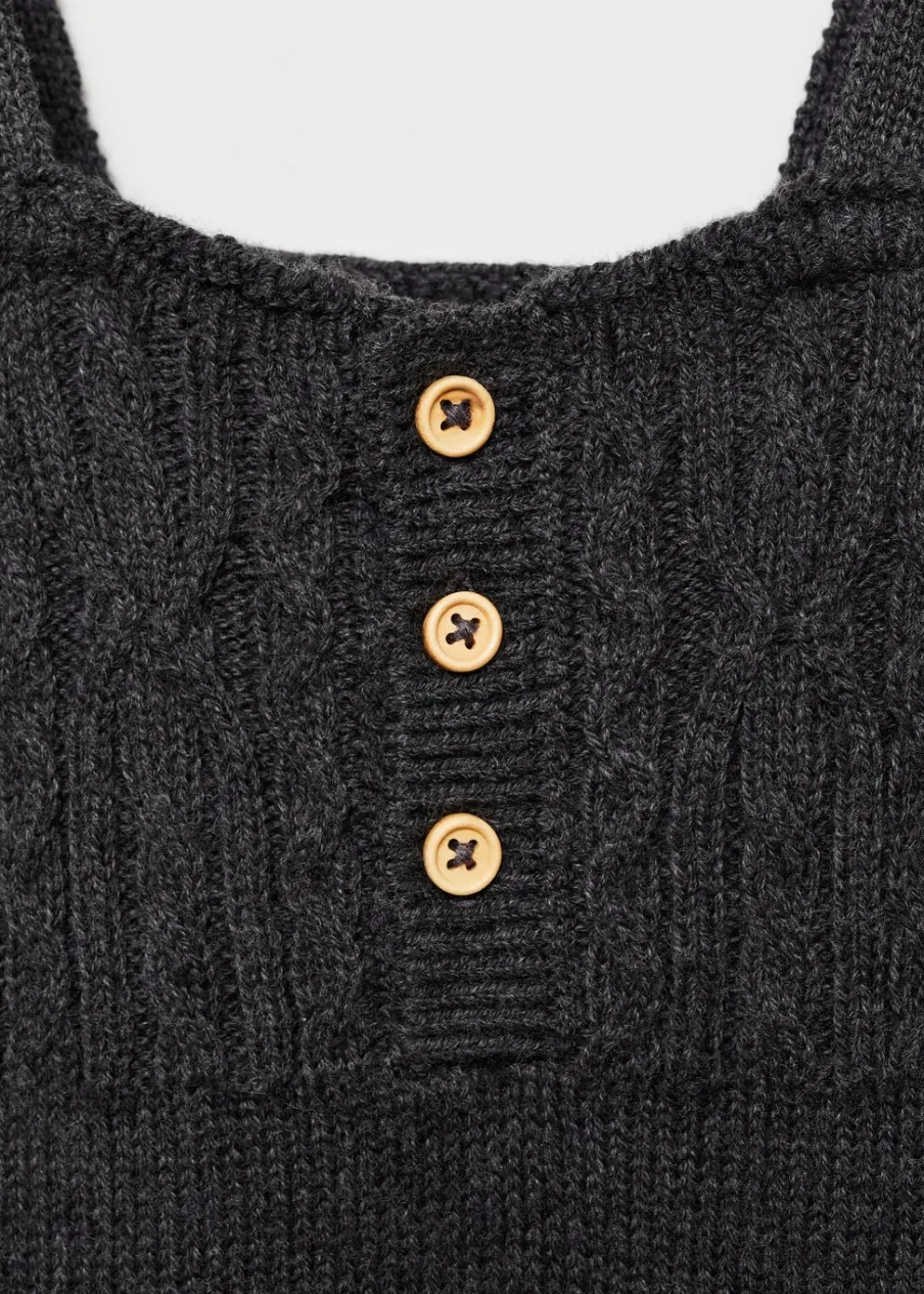 Model prosty. Kwadratowy dekolt. Zapięcie na guziki. Plecione elementy. Ramiączka. Rozcięcie u dołu z zapięciem na guziki. Dzianina.