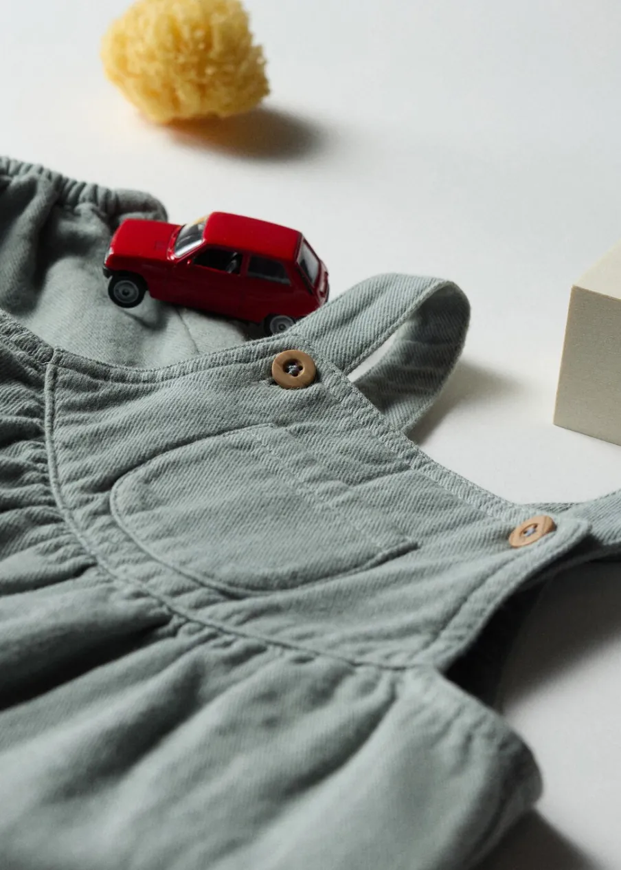 100% bomull. Model prosty. Model długi. Kwadratowy dekolt. Ramiączka. Guziki z imitacji drewna. Podwójne rozcięcie u dołu z boku z zapięciem na zatrzaski.