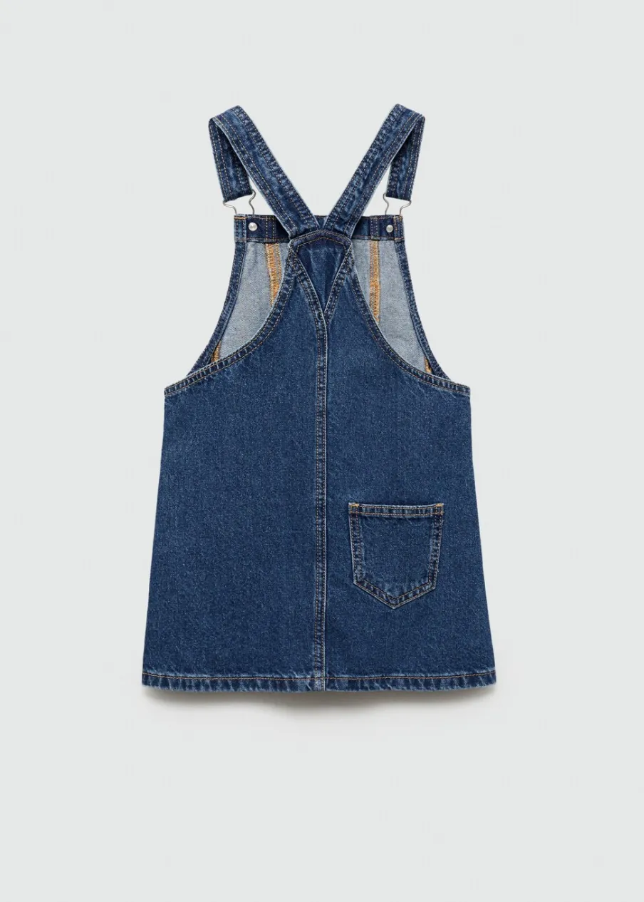 Tkanina bawełniana w dżinsowym stylu. Model prosty. Krótki krój. Kwadratowy dekolt. Regulowane ramiączka. Zapięcie na guziki. Kieszenie nakładane.