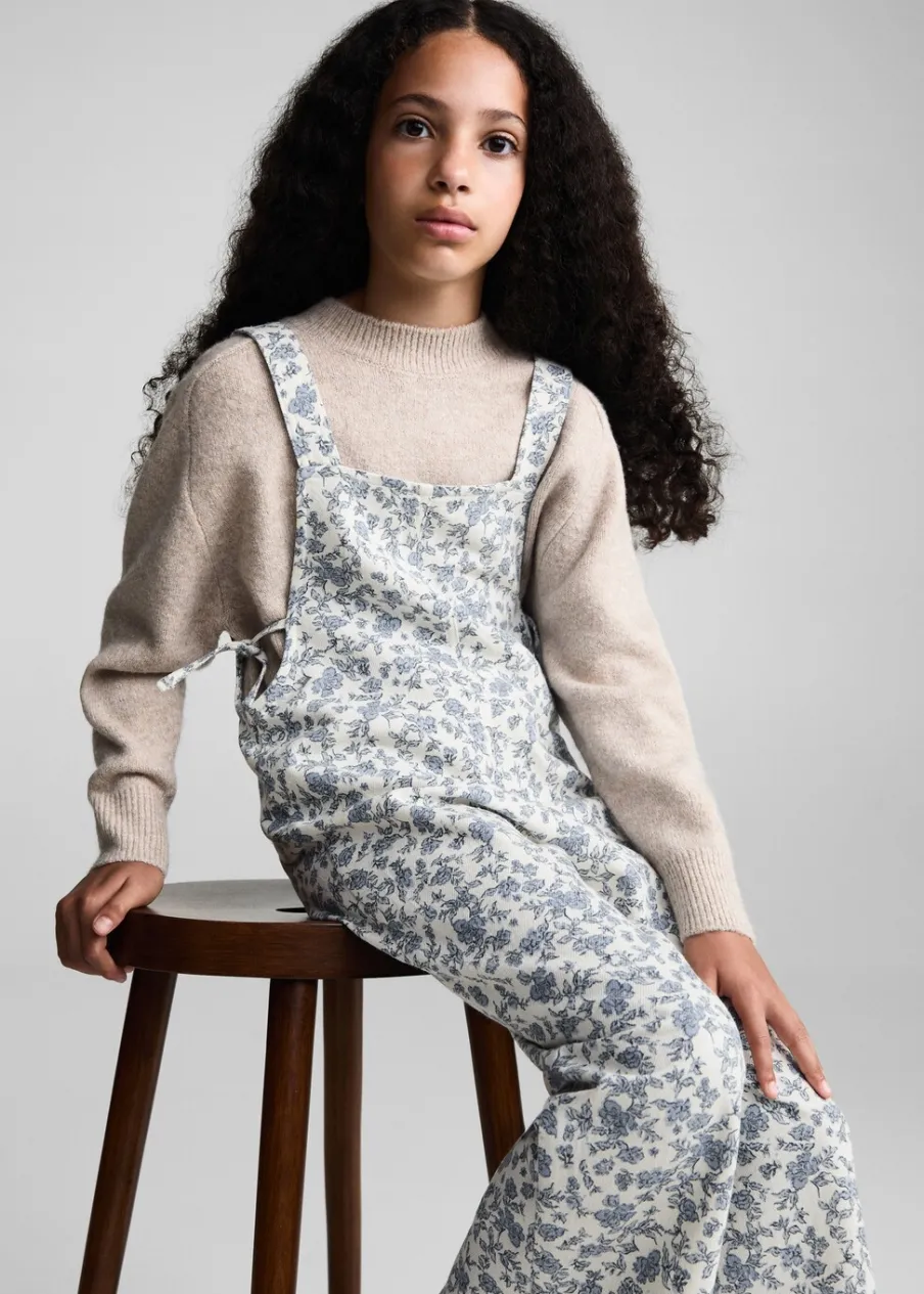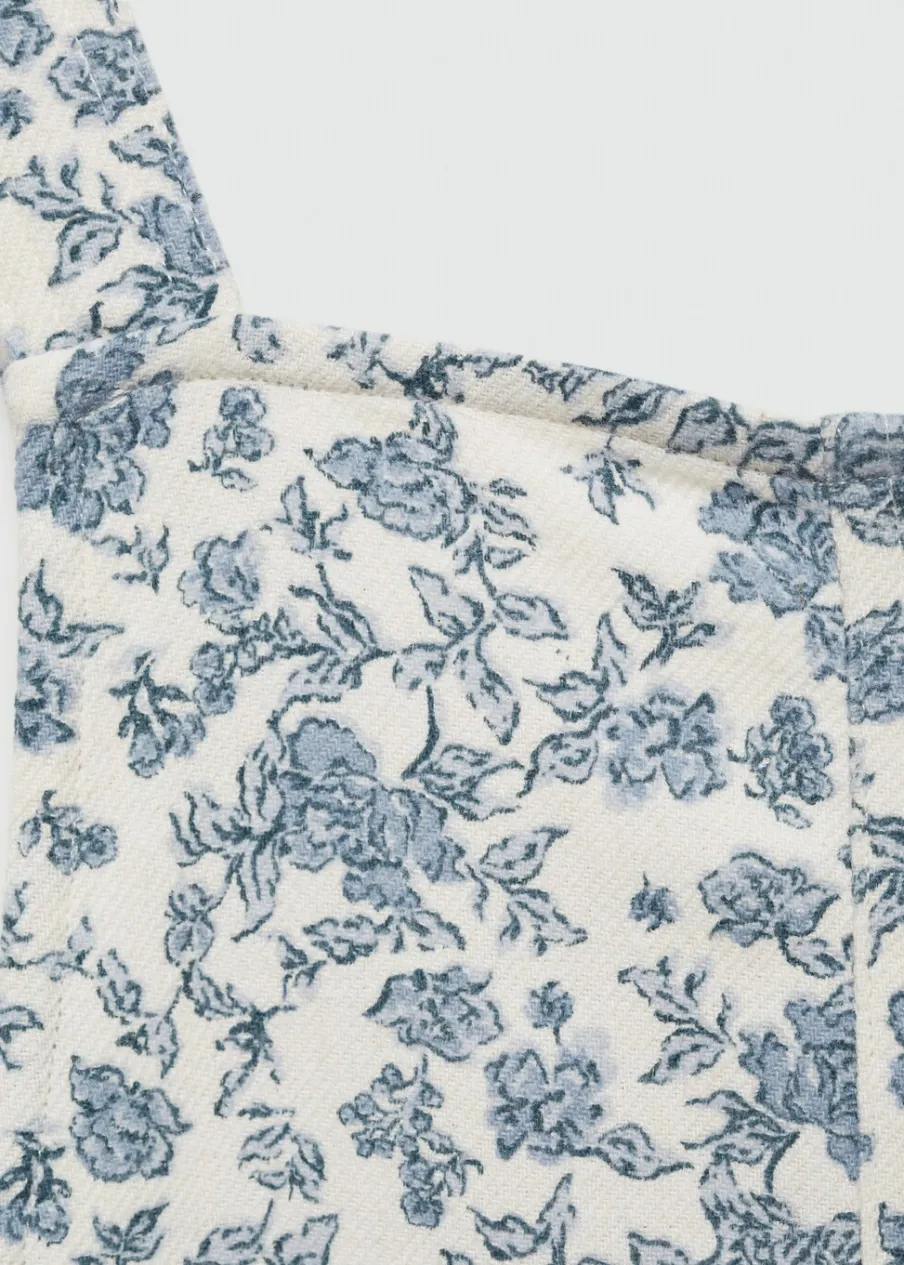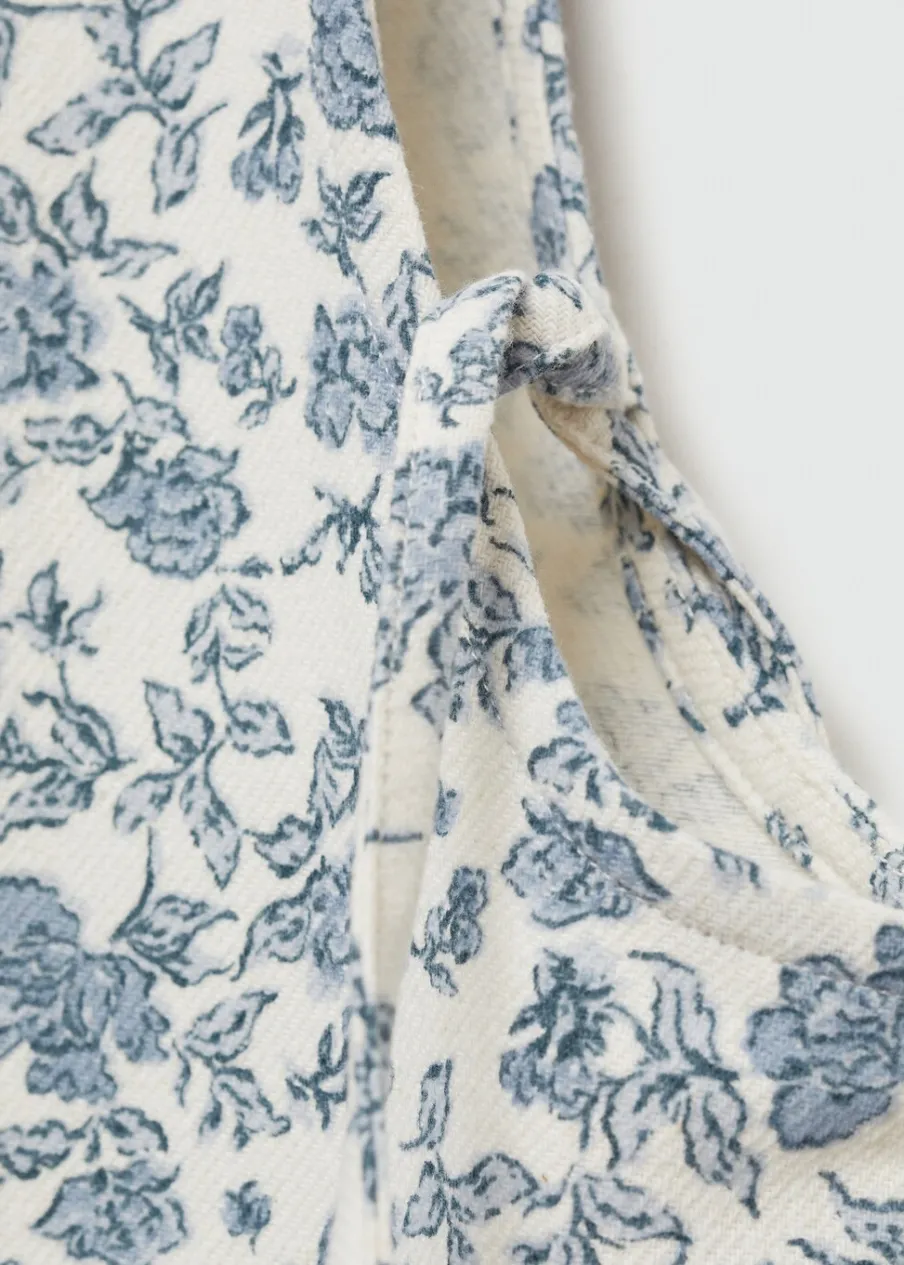 Kolekcja Powrót do szkoły. Tkanina z bawełną. Model prosty. Kwiatowy wzór. Model długi. Kwadratowy dekolt. Ramiączka. Wiązanie na kokardy po bokach.
