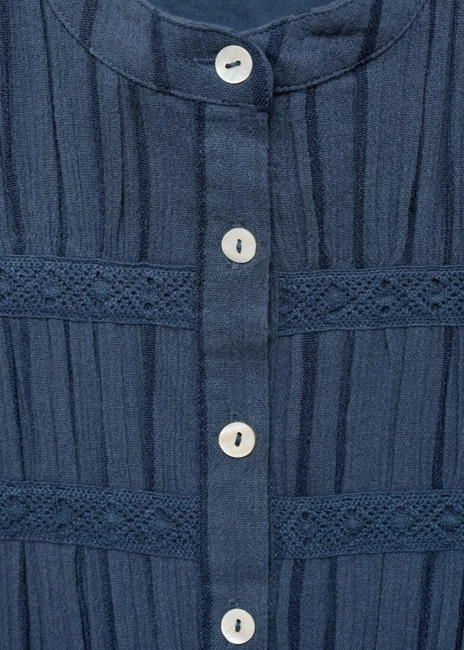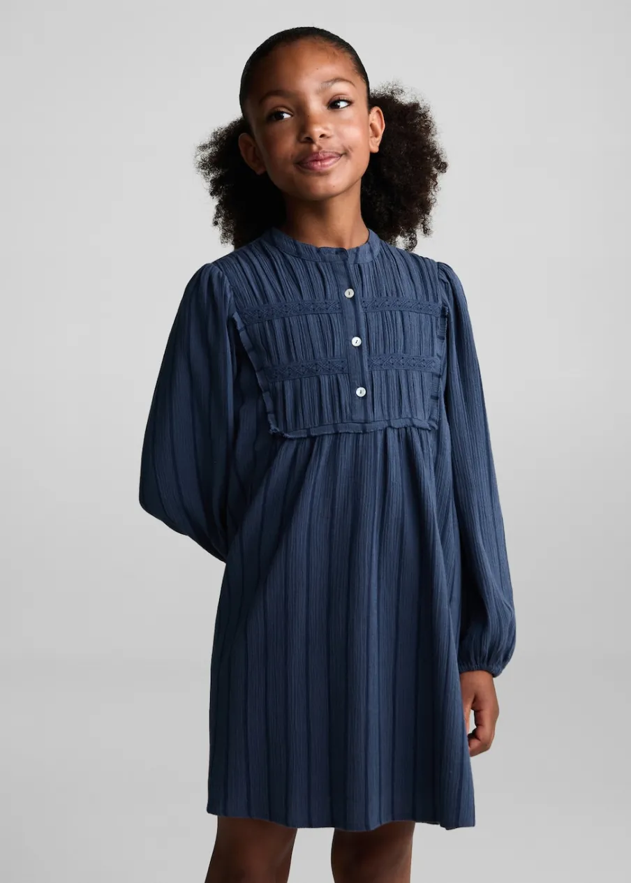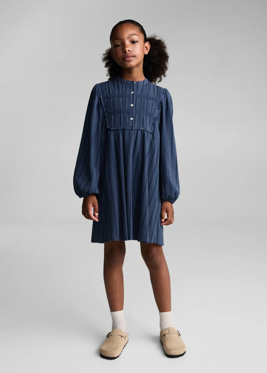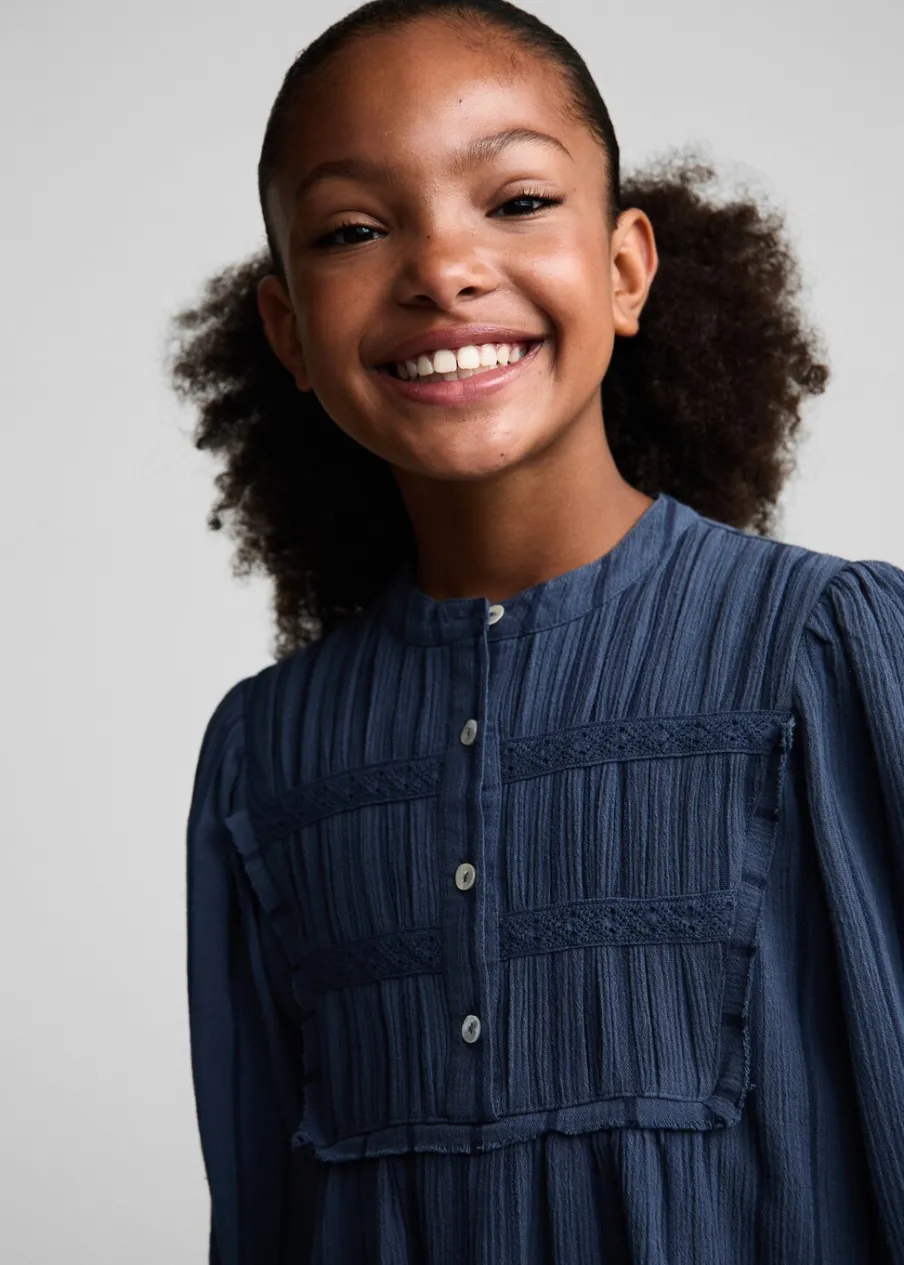 Zapięcie z przodu. Krótki krój. Stójkowy kołnierzyk. Długi bufiasty rękaw. Kolekcja Powrót do szkoły. Tkanina z bawełną. Model prosty.