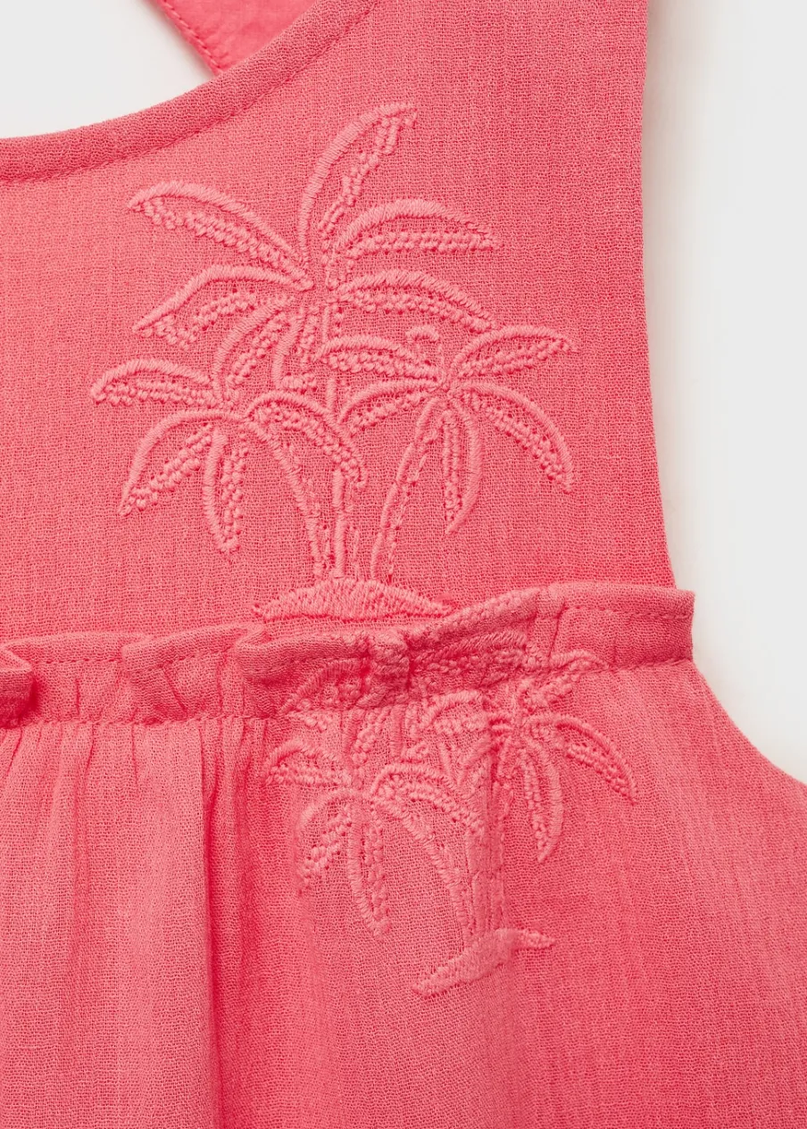 OpisBawełna 100%. Haftowane detale. Krój do kolan. Detal z rozcięciem. Okrągły dekolt. Bez rękawów.