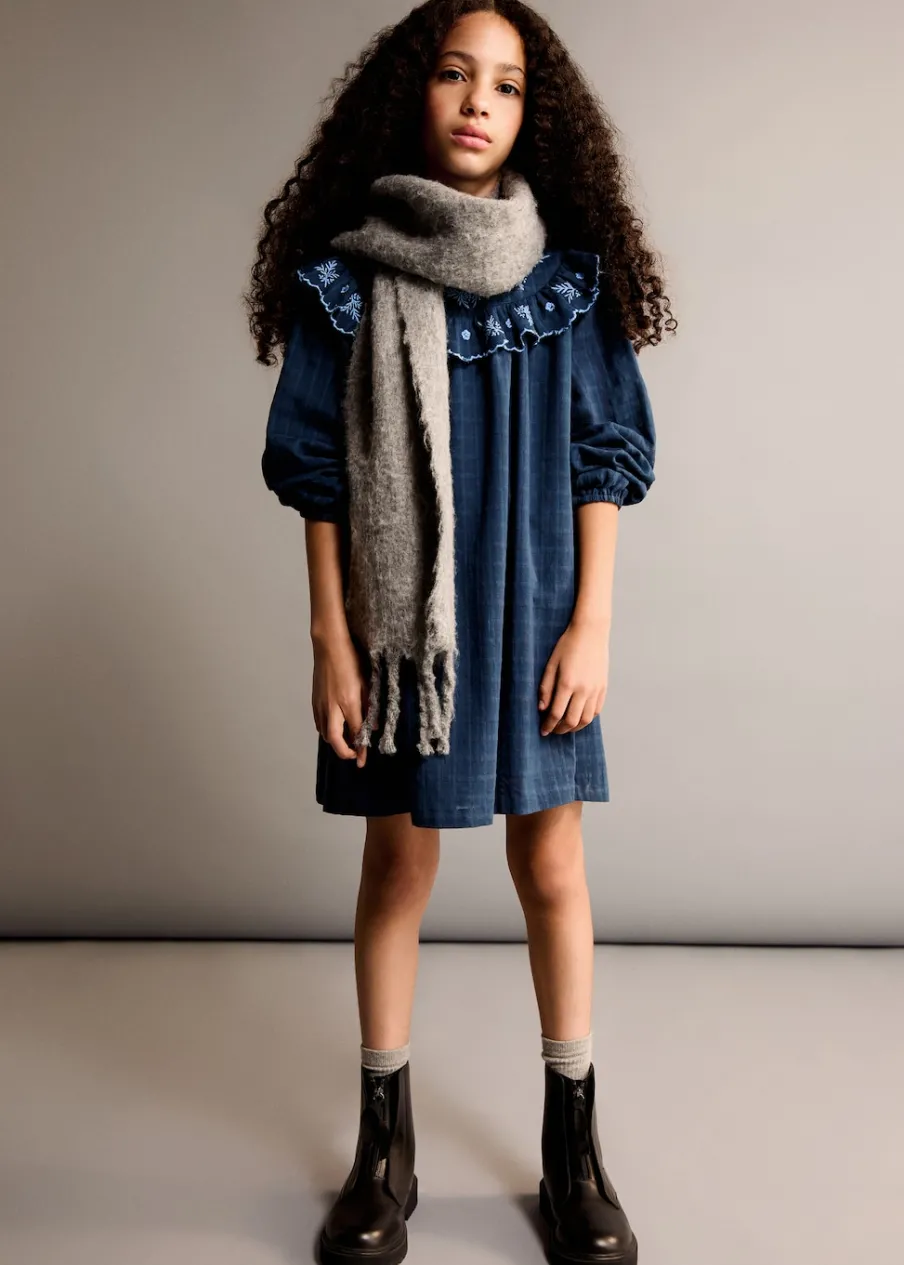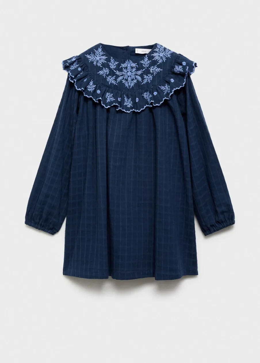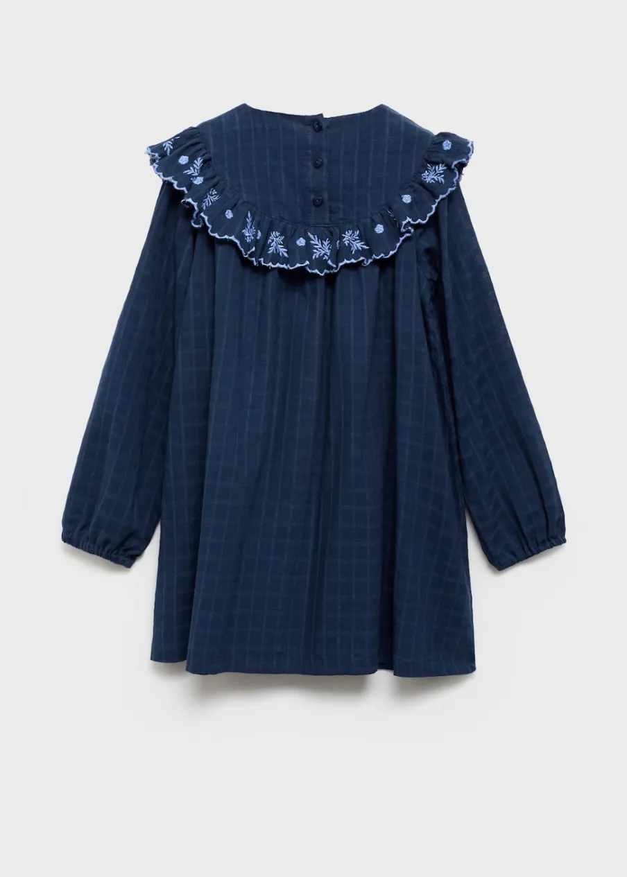 Model prosty. Haftowane detale. Długi rękaw. Okrągły dekolt. Wewnętrzna podszewka. Zapięcie z tyłu na guziki. Bawełna 100%. Deseń w kratę.