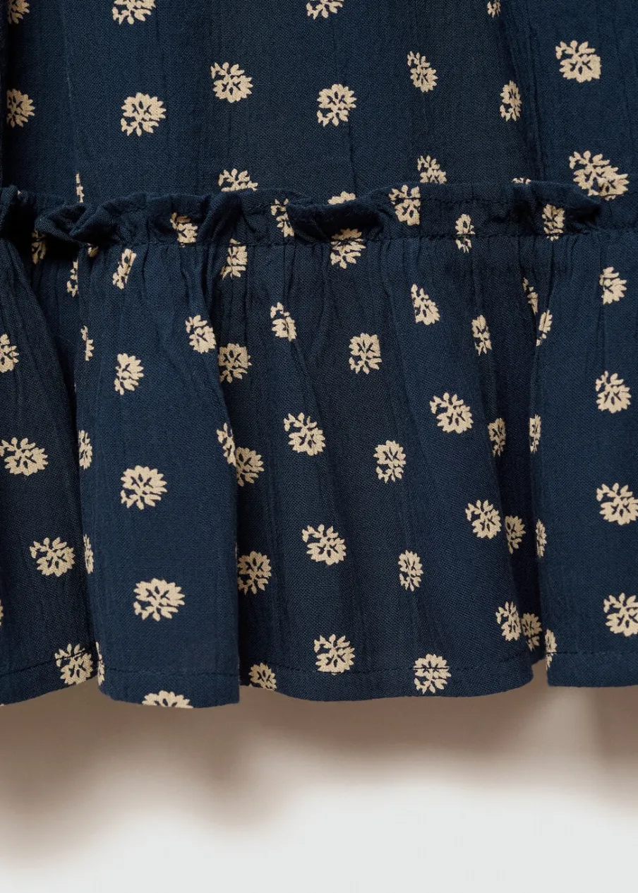 Lejąca tkanina. Kwiatowy wzór. Okrągły dekolt. Z falbanami. Długi rękaw. Zapięcie na guzik z tyłu. Tkanina z wiskozy.