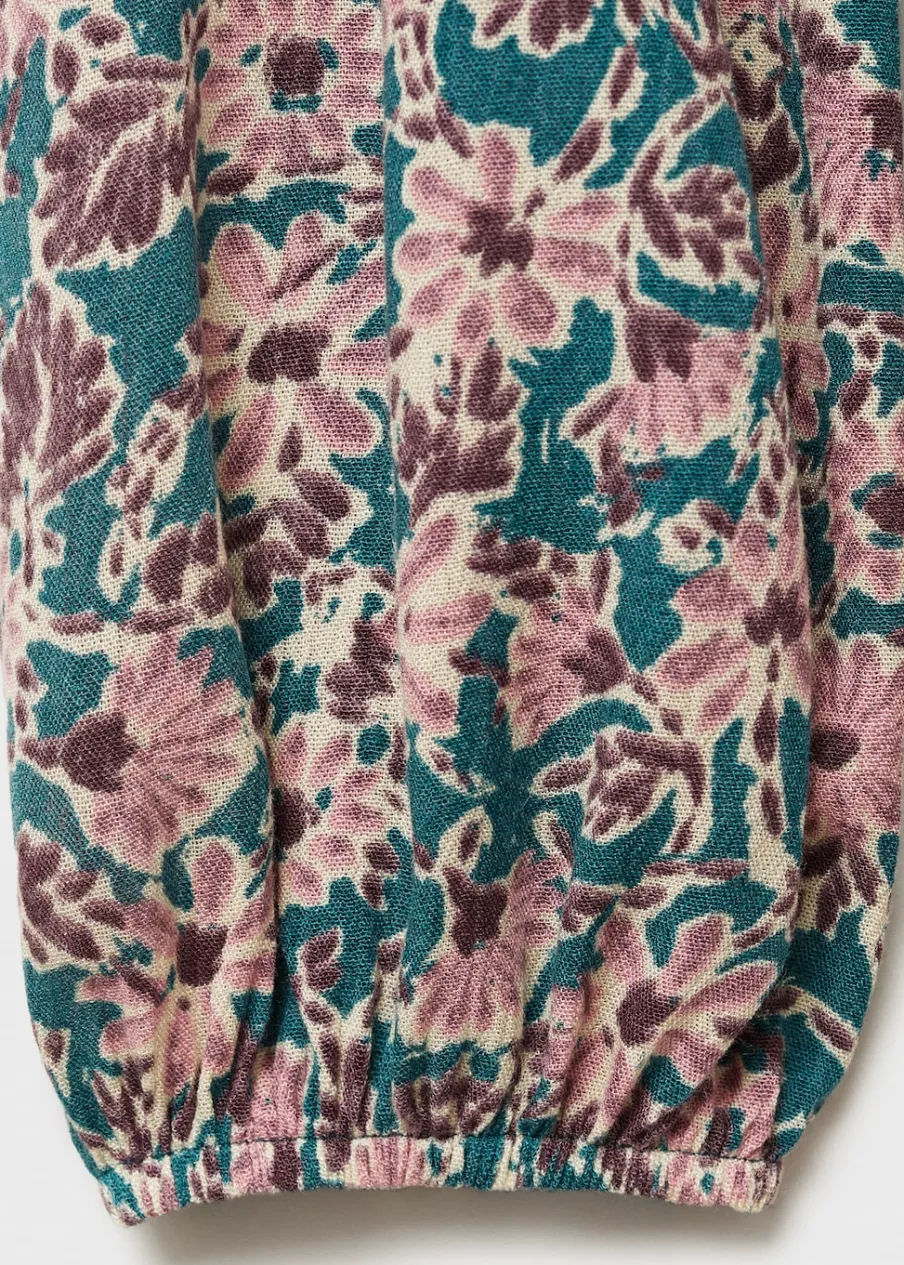 OpisKwiatowy wzór. Model prosty. Marszczona tekstura. Okrągły dekolt. Długi rękaw z elastycznymi mankietami.