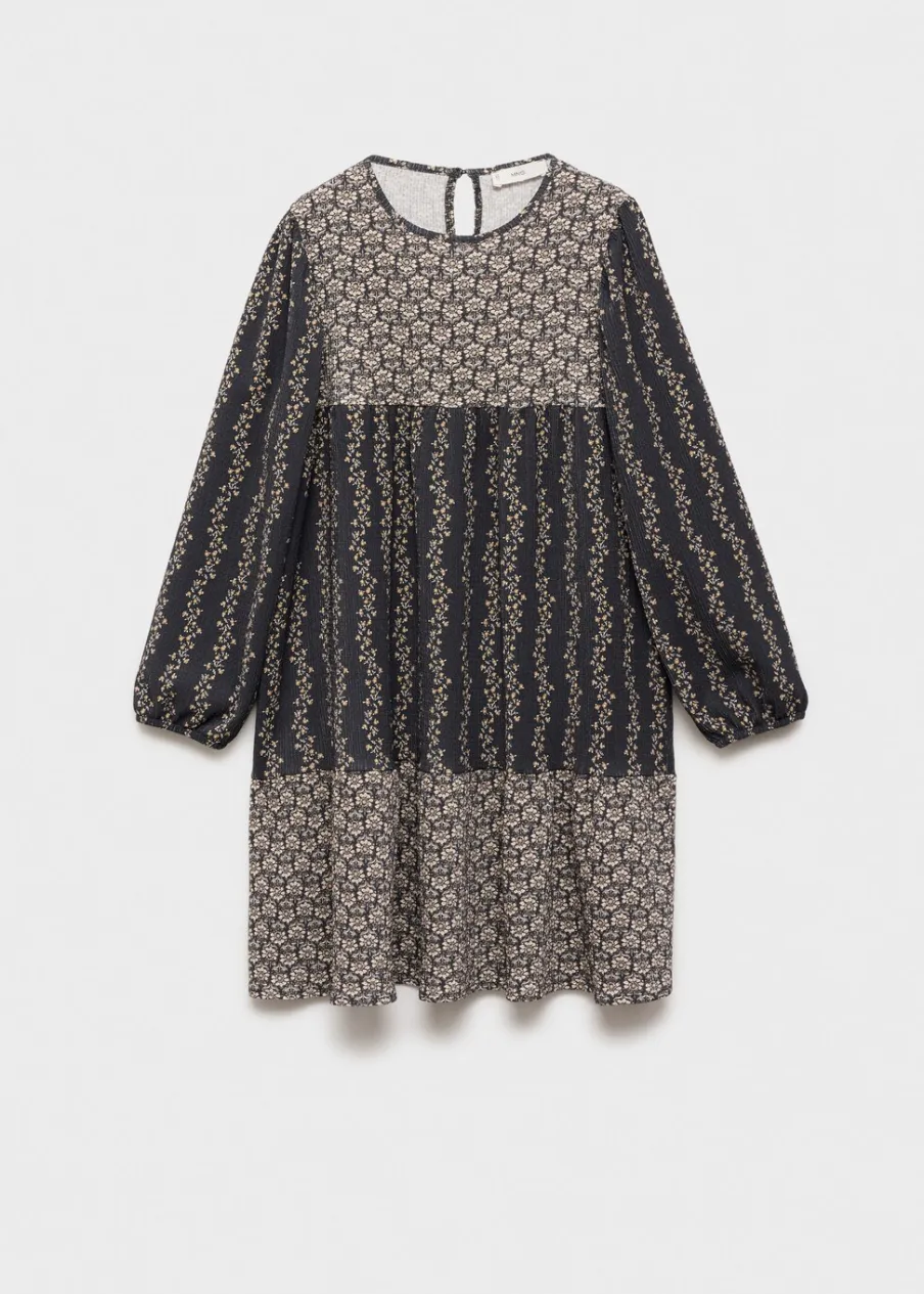 Mieszanka wzorów. Krótki krój. Okrągły dekolt z zapięciem na guzik. Długi rękaw z elastycznymi mankietami.