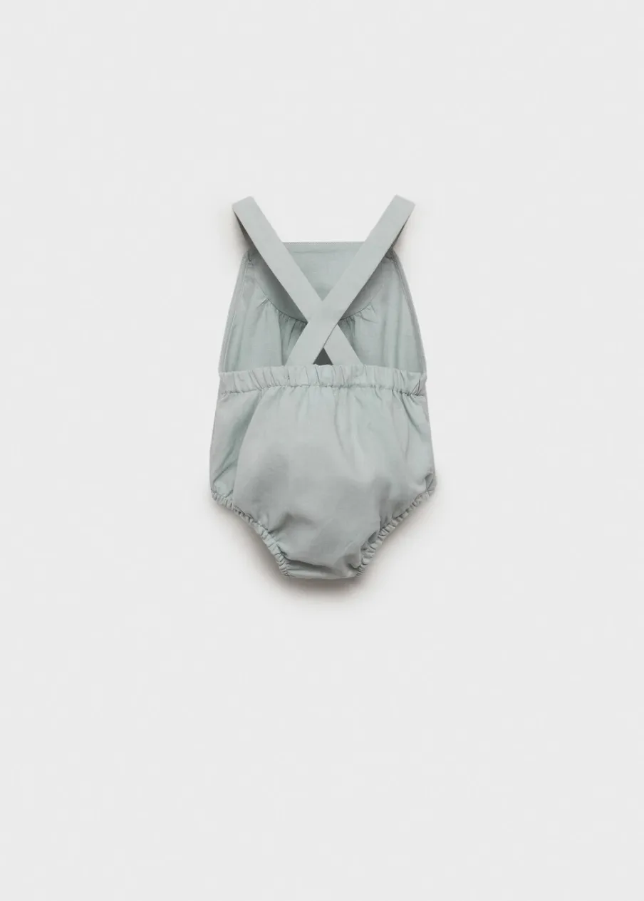 OpisBawełniana tkanina. Tkanina lniana. Krótki krój. Skrzyżowane ramiączka. Elastyczna gumka u dołu. Elastyczny pa…