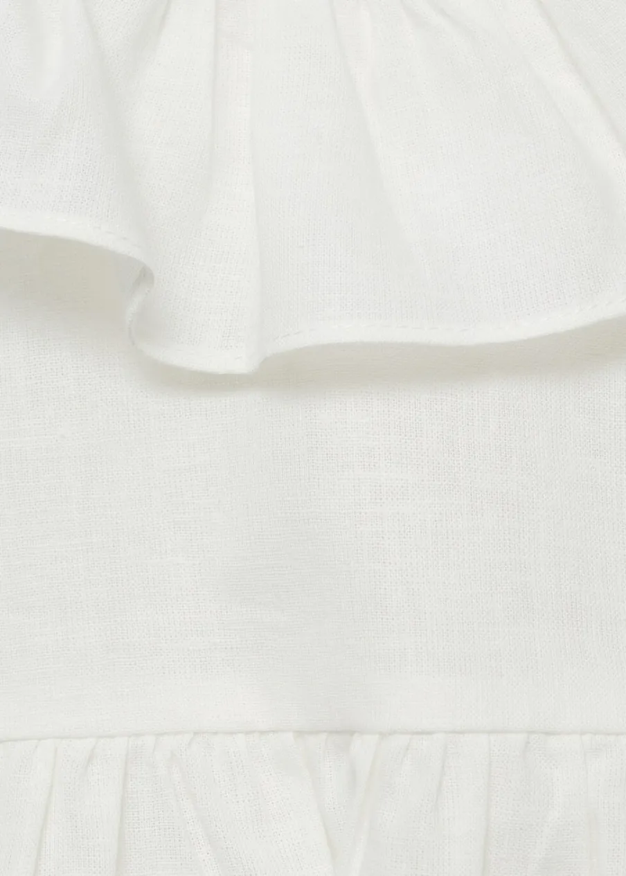 OpisBawełniana tkanina. Tkanina lniana. Body z kołnierzykiem falbanką. Wiązanie z tyłu. Elastyczna gumka u dołu.